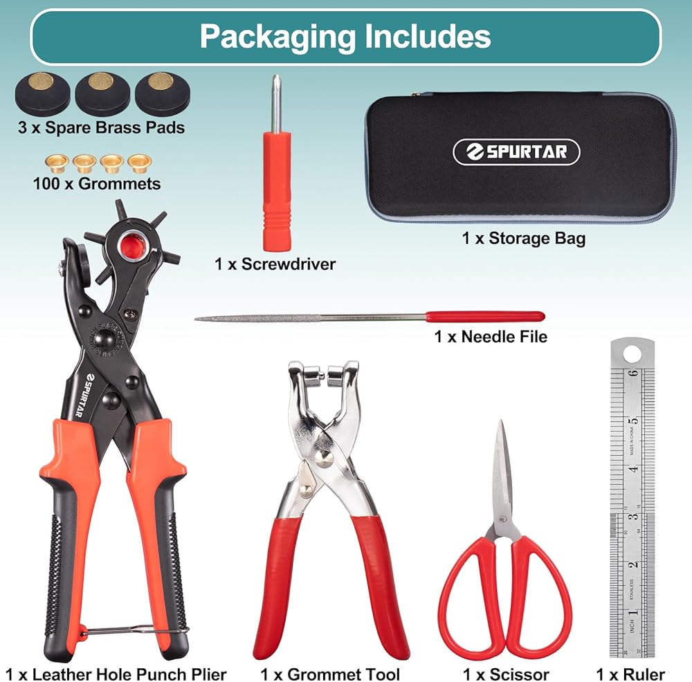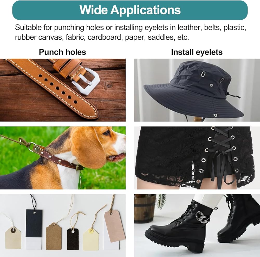 تركيب الحلقة المعدنية: قم بتحويل إبداعاتك إلى قطع ذات درجة احترافية باستخدام مجموعة الحلقات المضمنة. قم بربط الحلقات بشكل آمن لمزيد من الوظائف والجمال. تأتي مجموعة ثقب الجلد مع مجموعة متنوعة من الحلقات لتبدأ.