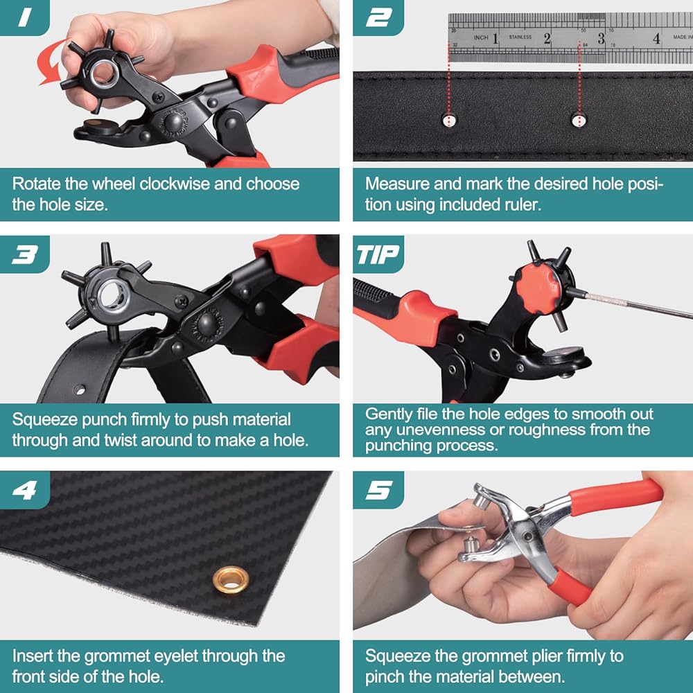 هيكل قوي: مصنوع من الفولاذ الصلب، تم تصميم ثقب الحزام للجلد ليتحمل اختبار الزمن. توفر المقابض المريحة المضادة للانزلاق قبضة مريحة، مما يضمن التحكم الدقيق ويقلل من تعب اليد حتى أثناء الاستخدام لفترة طويلة.