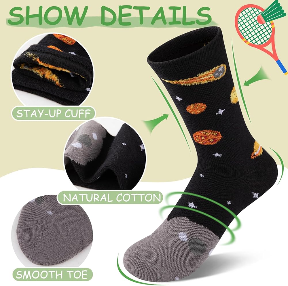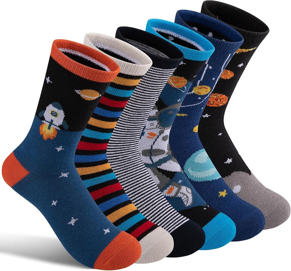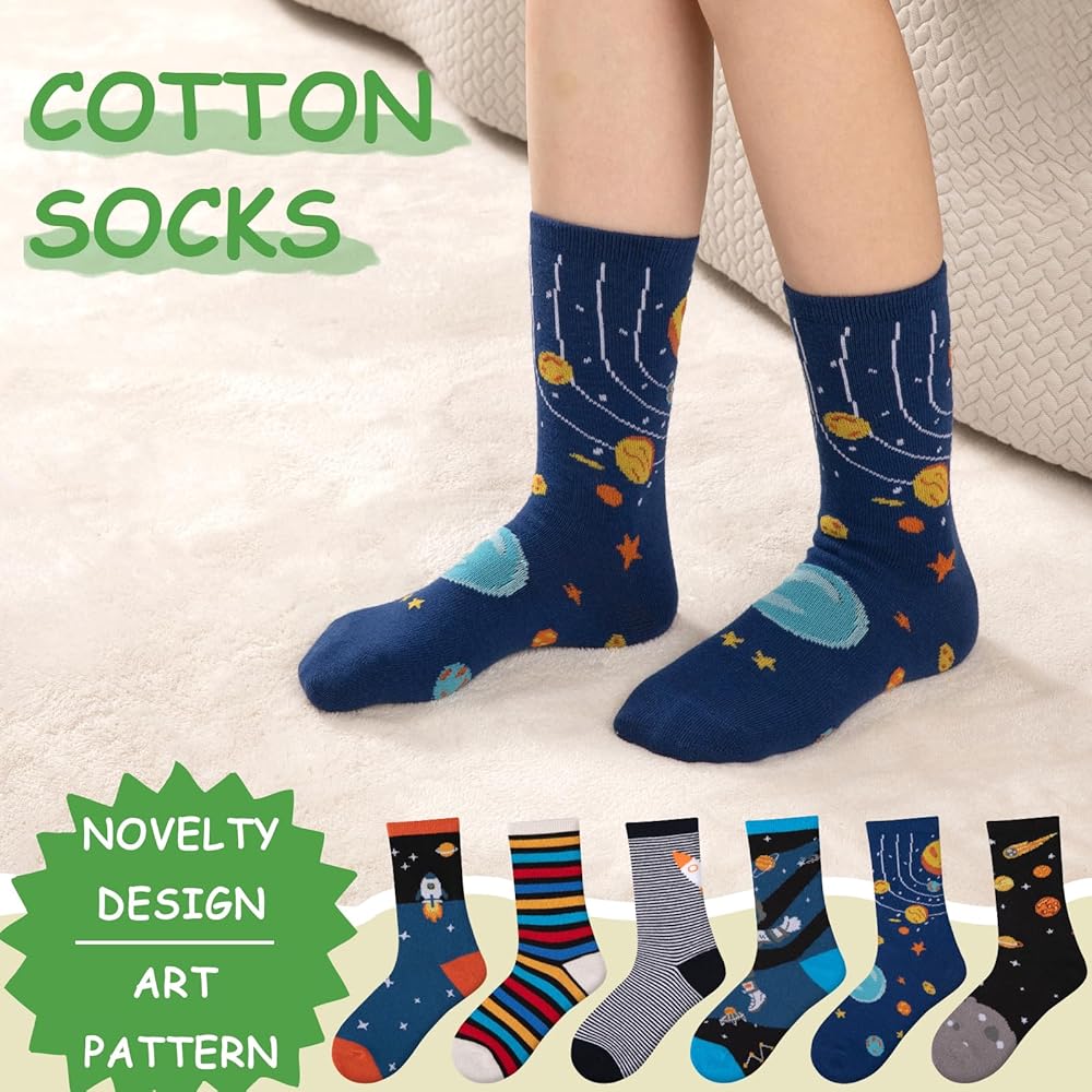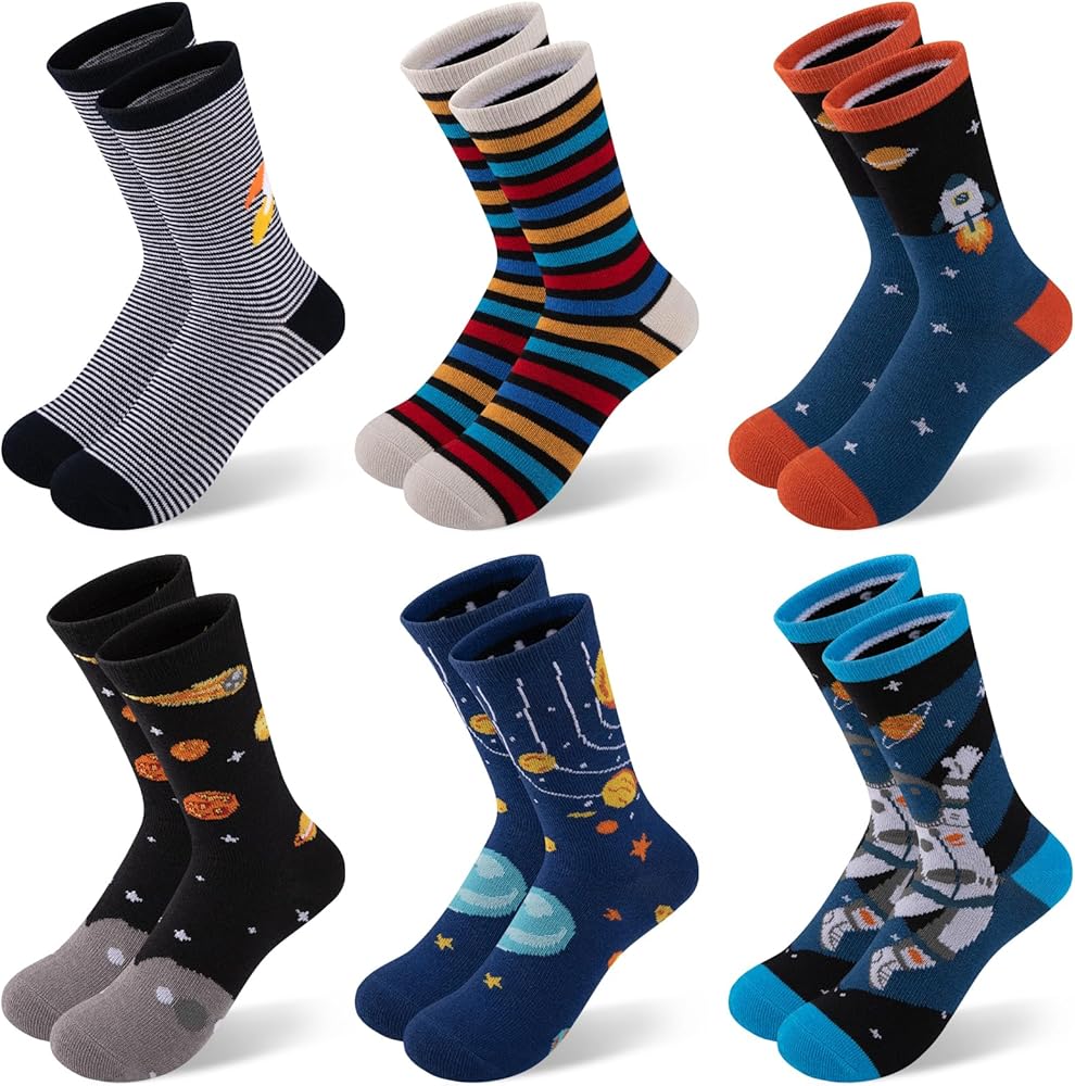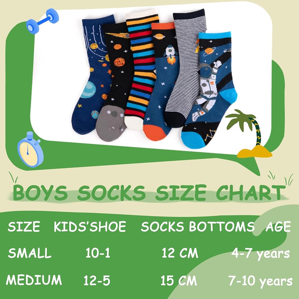 تصميم النمط: بفضل تصميماتها الجذابة، من المؤكد أن جوارب الأطفال المبتكرة هذه ستجذب خيال طفلك الصغير. اختر من بين الأنماط التي تتميز بكرة القدم والنجوم والصواريخ وغيرها من الصور الممتعة التي يحبها الأولاد. الألوان مشرقة وجريئة، مما يجعلها إضافة رائعة لأي ملابس