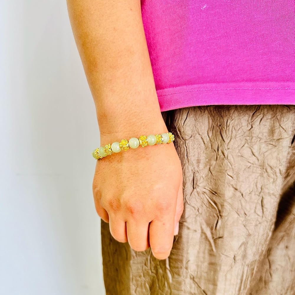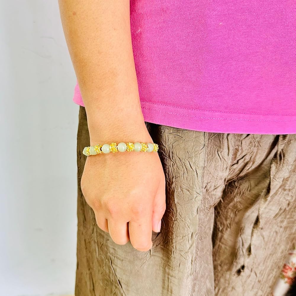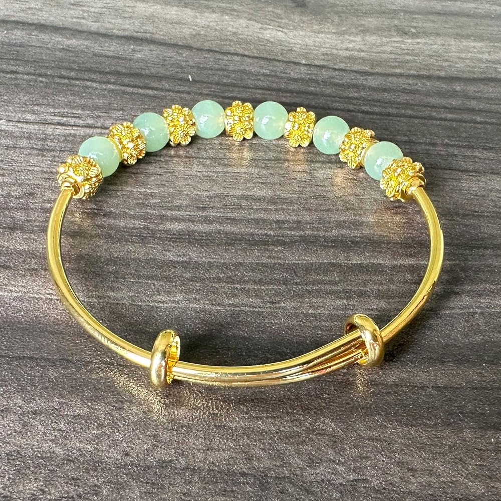 أزياء 18K الذهب مطلي زهرة سوار قابل للتعديل فو اليشم الخرز الذراع الفرقة الكفة سوار