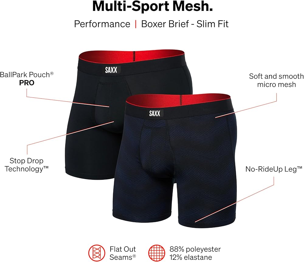 MULTI-SPORT MESH BOXER BRIEF FLY 2 PACK: Multi-Sport Mesh is a soft and versatile Performance style that keeps everything put, and dry, during sport and daily activities.