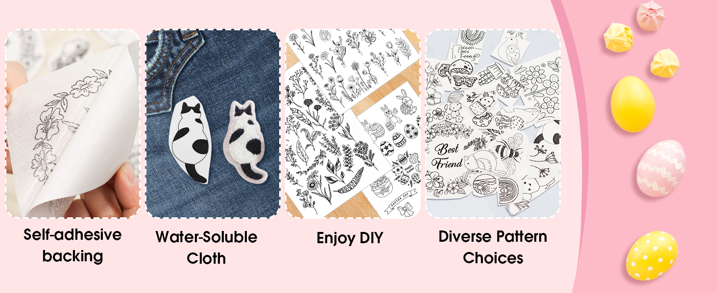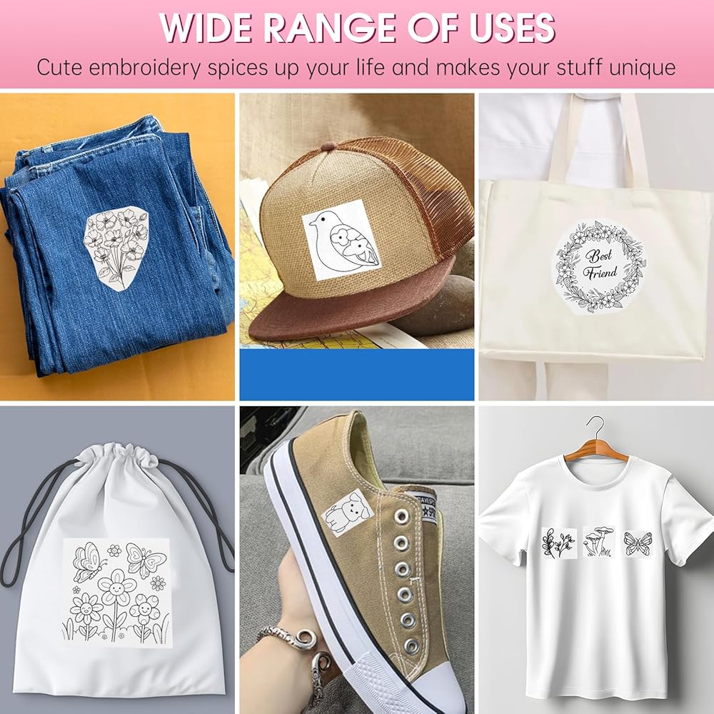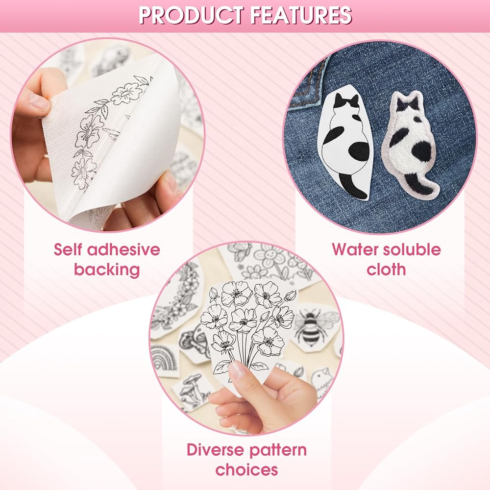 【تصميم غير صناعي】يتم طباعة أنماط التطريز مسبقًا على ورق تثبيت التطريز القابل للذوبان في الماء، ما عليك سوى شطفها أو نقعها في ماء دافئ، وسيتم غسلها دون ترك آثار أو بقايا.