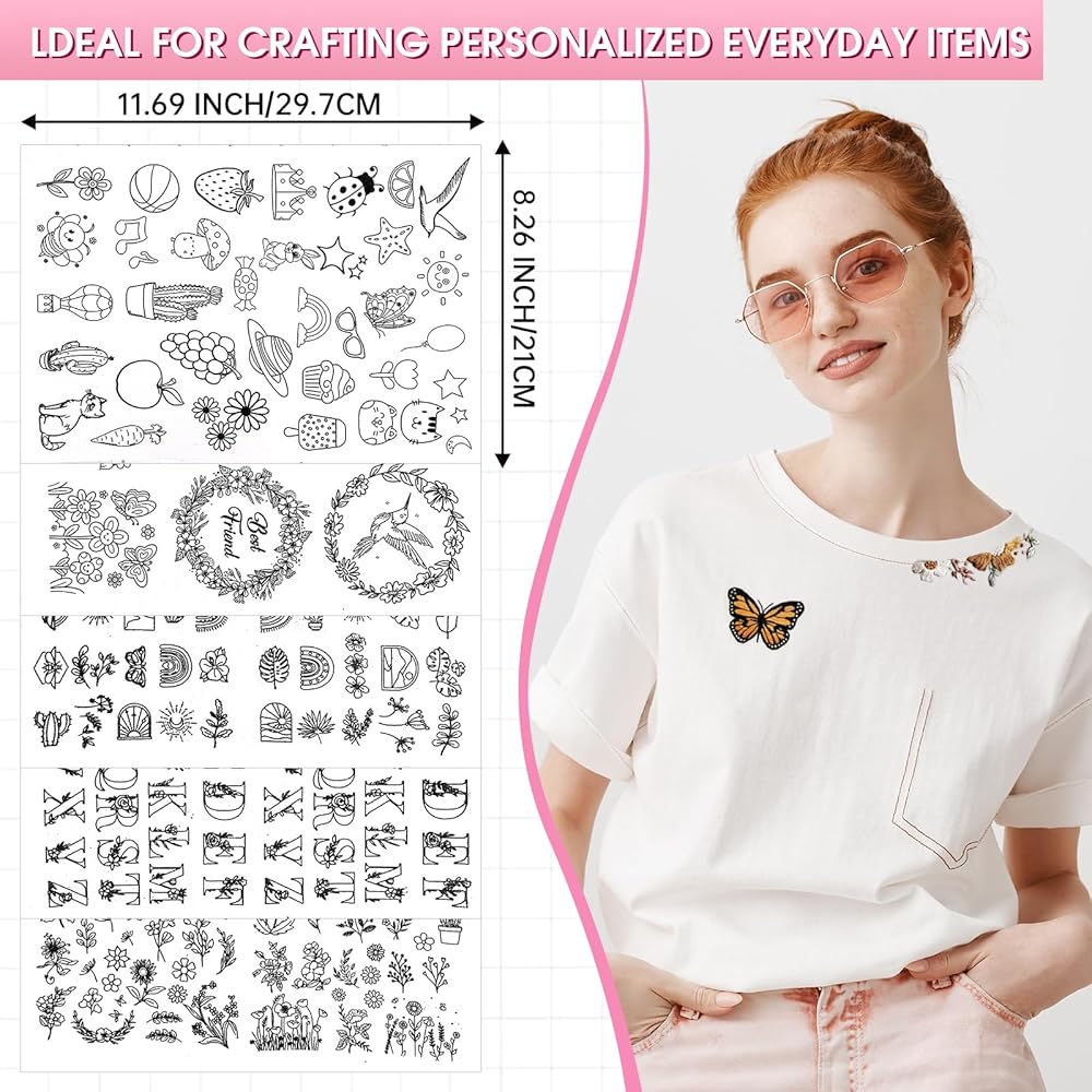 【تشمل العبوة】5 أوراق من ورق التثبيت القابل للتمزيق بحجم A4 مع 182 نمطًا مختلفًا مطبوعًا مسبقًا، مما يلبي بسهولة احتياجات الخياطة اليدوية المتنوعة.