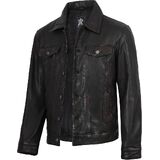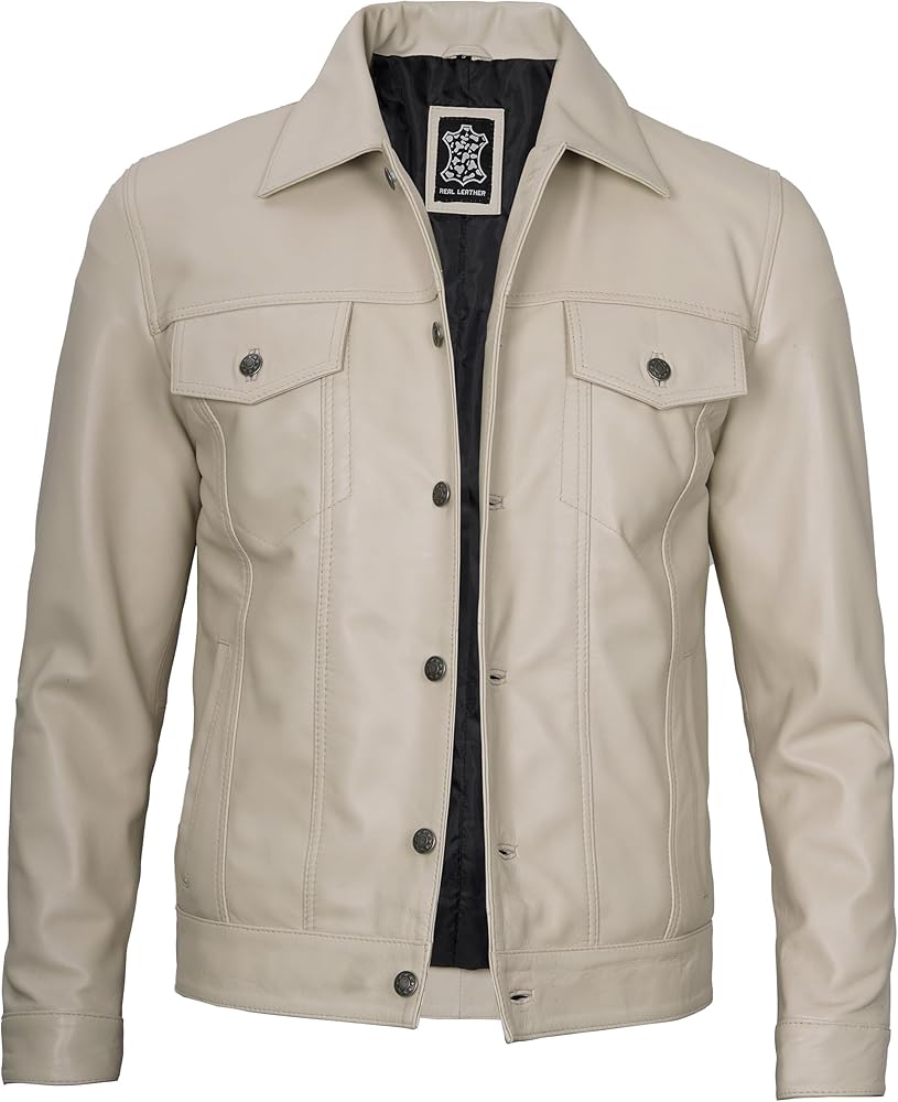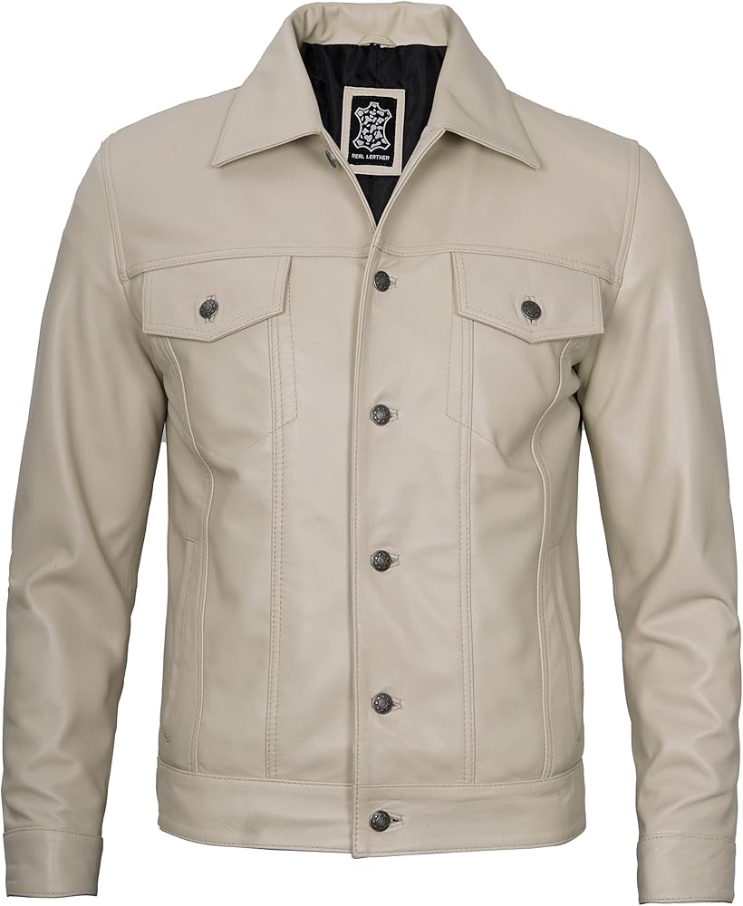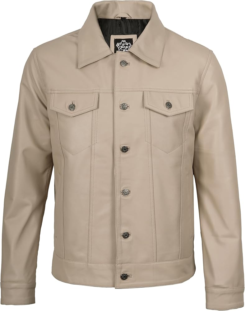 𝐒𝐭𝐲𝐥𝐢𝐬𝐡 𝐃𝐞𝐬𝐢𝐠𝐧: يتميز بنمط سائق الشاحنة مع زر للإغلاق، وياقة القميص، وخصر قابل للتعديل وأساور أكمام بأزرار لضمان ملاءمة مثالية. سترة سائق الشاحنة الجلدية هذه مثالية للحفلات الليلية والملابس الكاجوال. السترات الجلدية للرجال لدينا مصممة للمتانة والاستخدام اليومي.
