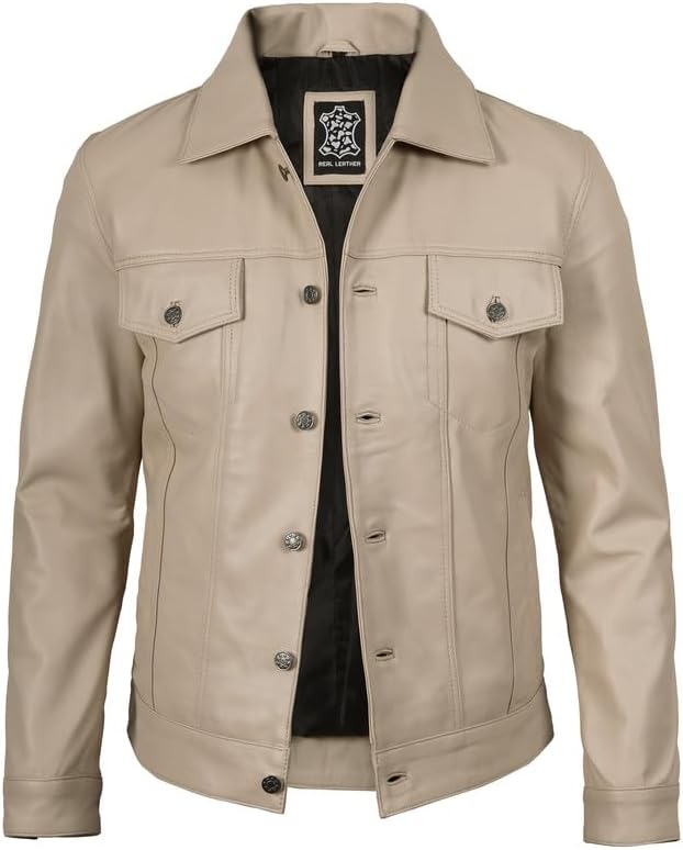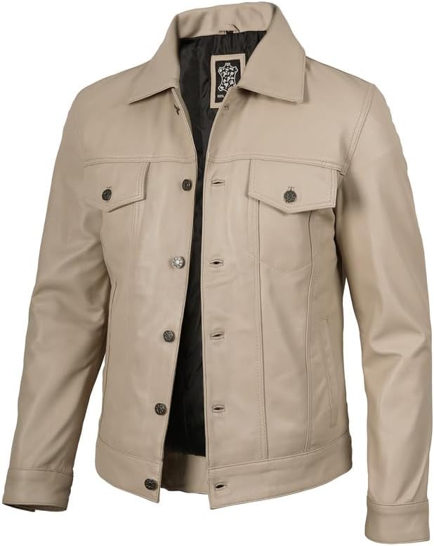 𝐌𝐚𝐭𝐞𝐫𝐢𝐚𝐥 & 𝐂𝐫𝐚𝐟𝐭𝐬𝐦𝐚𝐧𝐬𝐡𝐢𝐩: مصنوع يدويًا من جلد Lambskin الحقيقي بنسبة 100 ٪ ، رجالنا من الجلد البيج الجلدي يتميزون ببطانة بوليستر ناعمة للراحة والمتانة النهائية.
