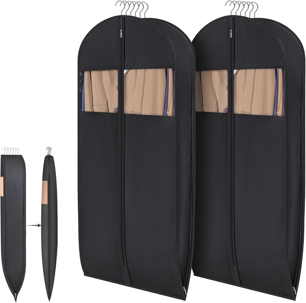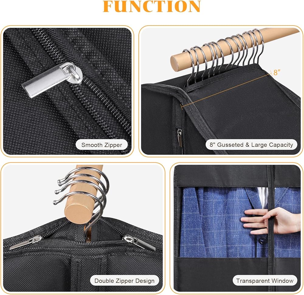 【نافذة شفافة - يسهل التعرف عليها】تحتوي حقائب الملابس هذه على نافذة شفافة تسمح لك من خلالها بالتعرف بسهولة على الملابس الداخلية دون فتح حقائب البدلات للرجال. كما أنها تحتوي على حامل بطاقة عمل واضح حيث يمكنك وضع بطاقات الاسم لكل حقيبة ملابس. فهو يجعل العثور على الملابس وتنظيمها أمرًا سهلاً، ويوفر الوقت لجدولك اليومي أو المواعدة المهمة.