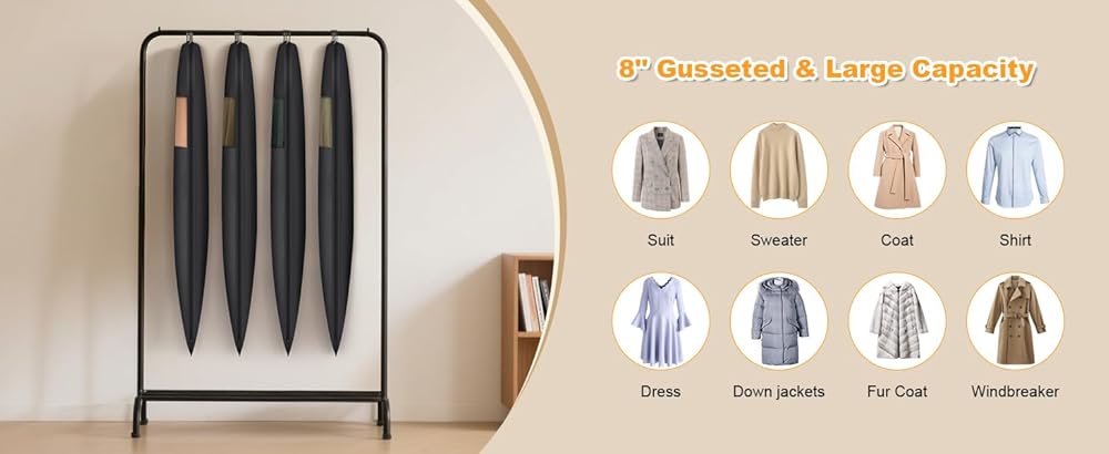 【حقيبة بدلة مقاس 40 بوصة - قم بإنشاء خزانة نظيفة】مجموعة من 8 أكياس ملابس بمقاس 40 بوصة × 24 بوصة × 1 بوصة، يمكن لكل حقيبة بدلة أن تحمل بدلة واحدة أو قميصين. حقائب الملابس هذه مقاس 40 بوصة مناسبة تخزين معظم القمصان بما في ذلك البدلات والقمصان والقمصان والسراويل والسترات والسترات الصوفية وملابس العمل والسترات المبطنة بالقطن ومعطف الشتاء والمزيد. يوصى باختيار غطاء بدلة مقاس 60 بوصة】