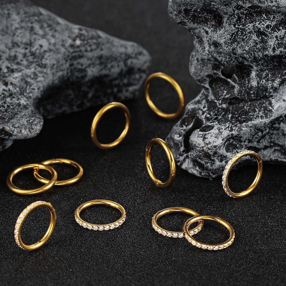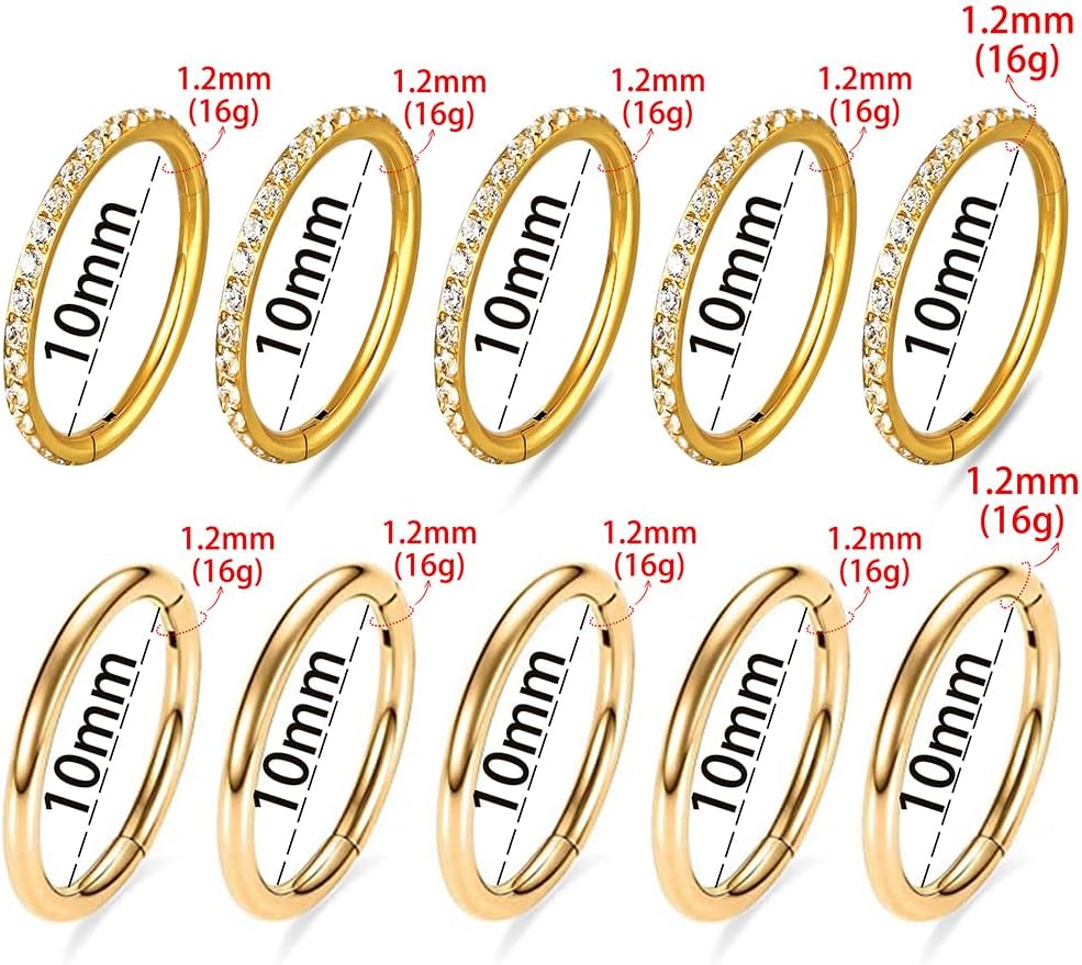[سوف تحصل على]: 10 قطع من الحلقات بما في ذلك 5 قطع بوجه سادة و5 قطع وجه زركونيا. إنها مجوهرات فريدة من نوعها لثقب الجسم، كما أنها خيار هدية رائع لعيد الحب، وعيد الأم، والكريسماس، وأعياد الميلاد، واحتفالات الزفاف، وما إلى ذلك.