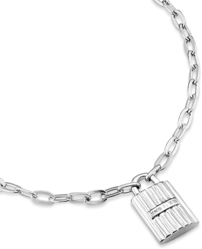 This necklace includes links that hold a large central padlock with the UNOde50 logo engraved. This handcrafted jewel has been made in Spain through a meticulous process. It has a carabiner clasp that allows the jewelry to be adjusted to the desired size. Get it now and wear it on any occasion. The Confident collection symbolizes self-confidence and confidence in others. It is said that the key symbolizes communication and the padlock symbolizes trust. Two symbols that have always been with us and are constantly changing.