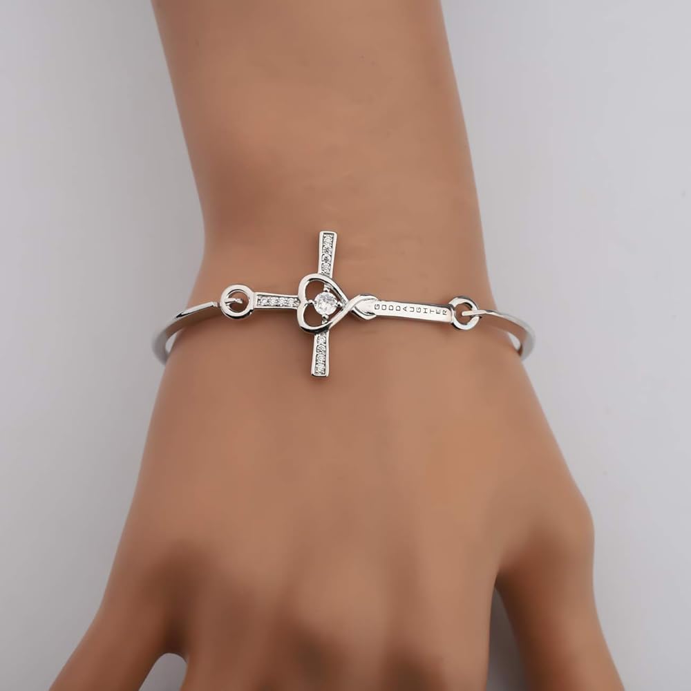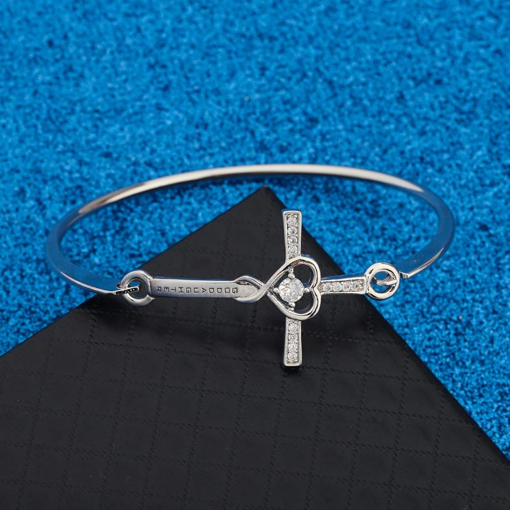 • ❤Size❤: Infinity love cross charm: 4.5cm (1.77inch) * 2.5cm (0.98inch), cross bangle inner diameter: 6.3cm (2.48inch) * 5.1cm (2inch).
