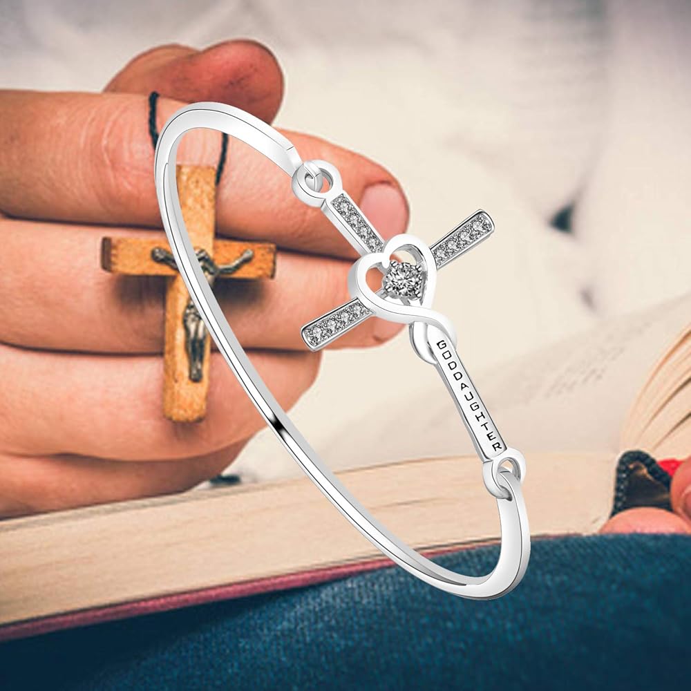 ❤WUSUANED Goddaughter Gift Infinity Love Heart Cross Bracelet Christian Jewelry First Communion Gift
