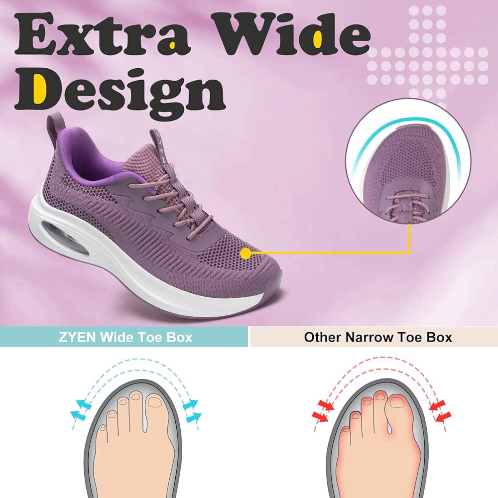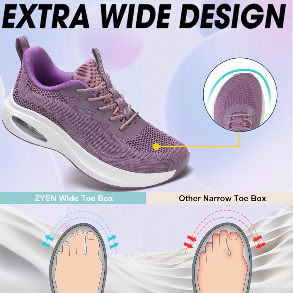صندوق عريض لأصابع القدم: تصميم أحذية أصابع القدم مطورة، توفر أحذية الجري النسائية من ZYEN مساحة واسعة لأصابع القدم للسماح لأصابع القدم بالاسترخاء والانتشار بشكل طبيعي.