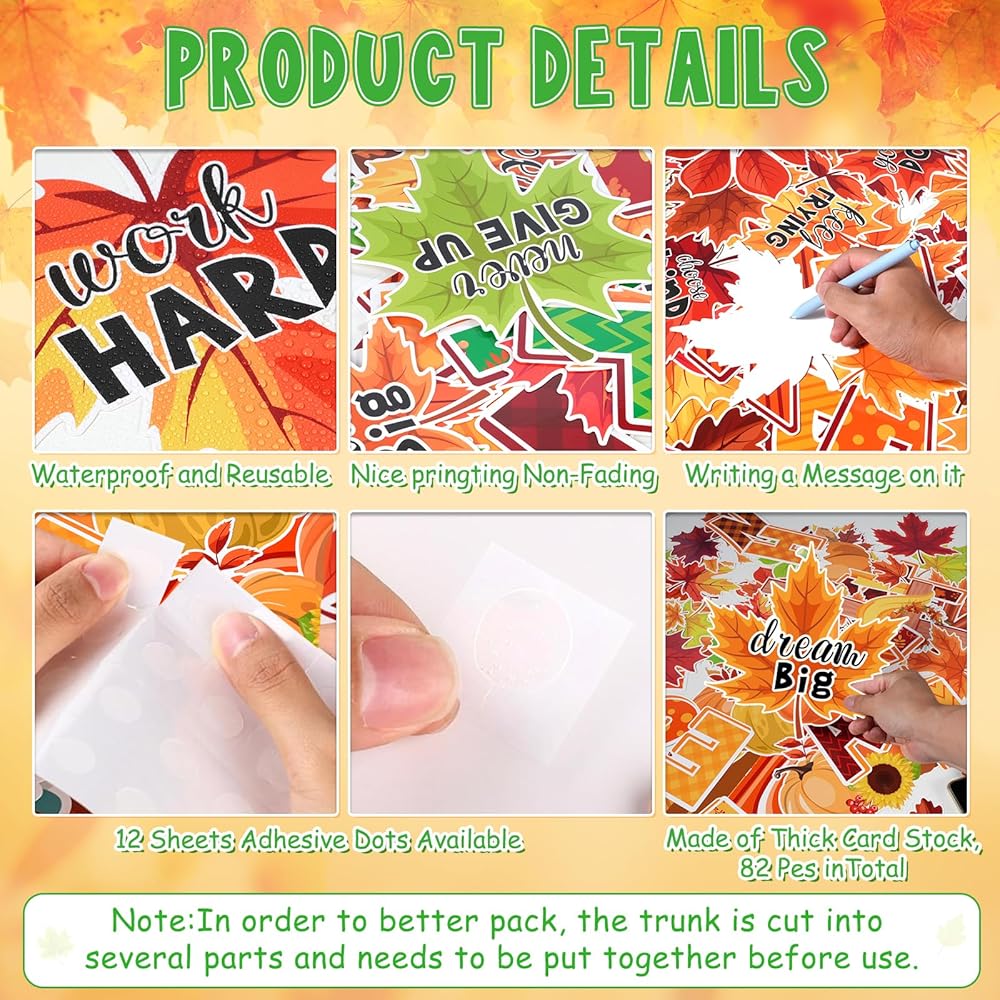 • Package Contents: The fall classroom bulletin board set contains 85 paper-cuts with different patterns, confetti color and different size,come with 200pcs glue points for you to stick,enough for your kids to complete a set of fall autumn tree bulletin board decor.