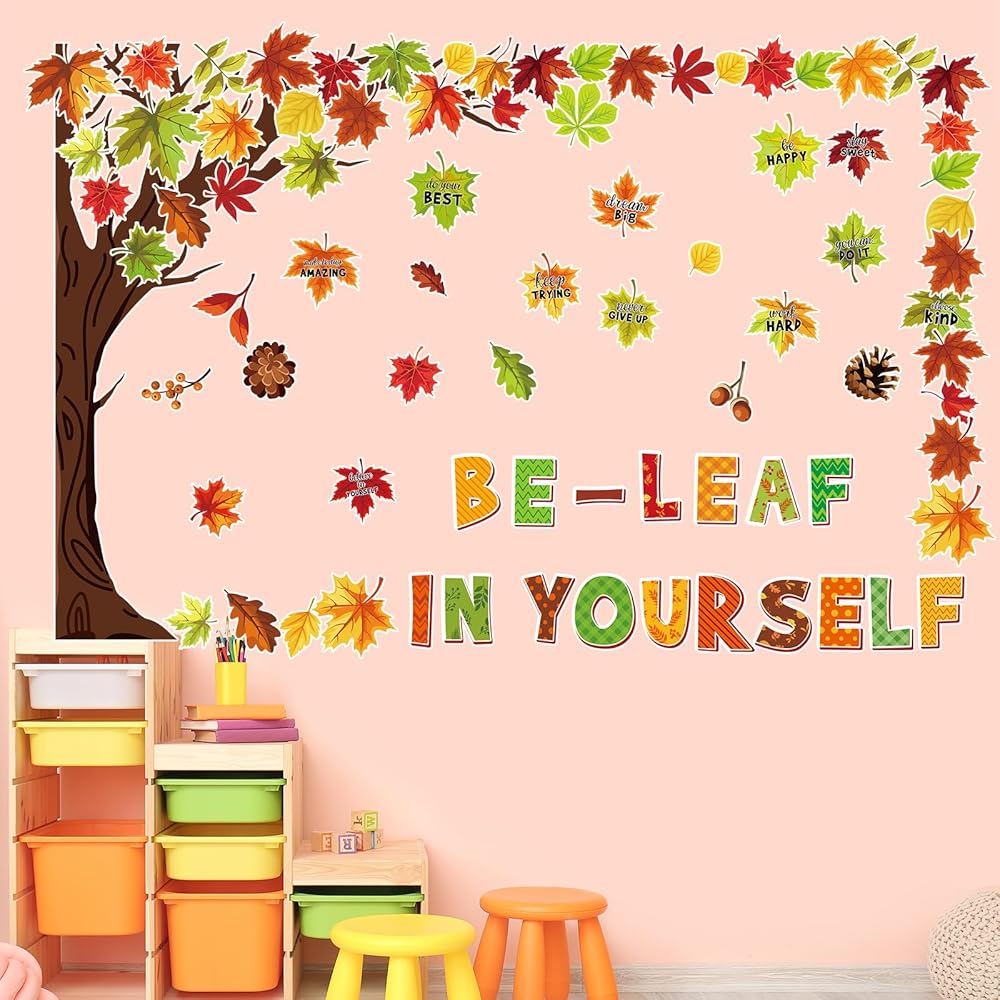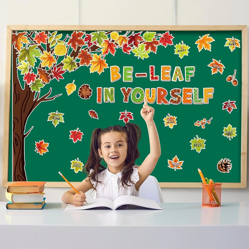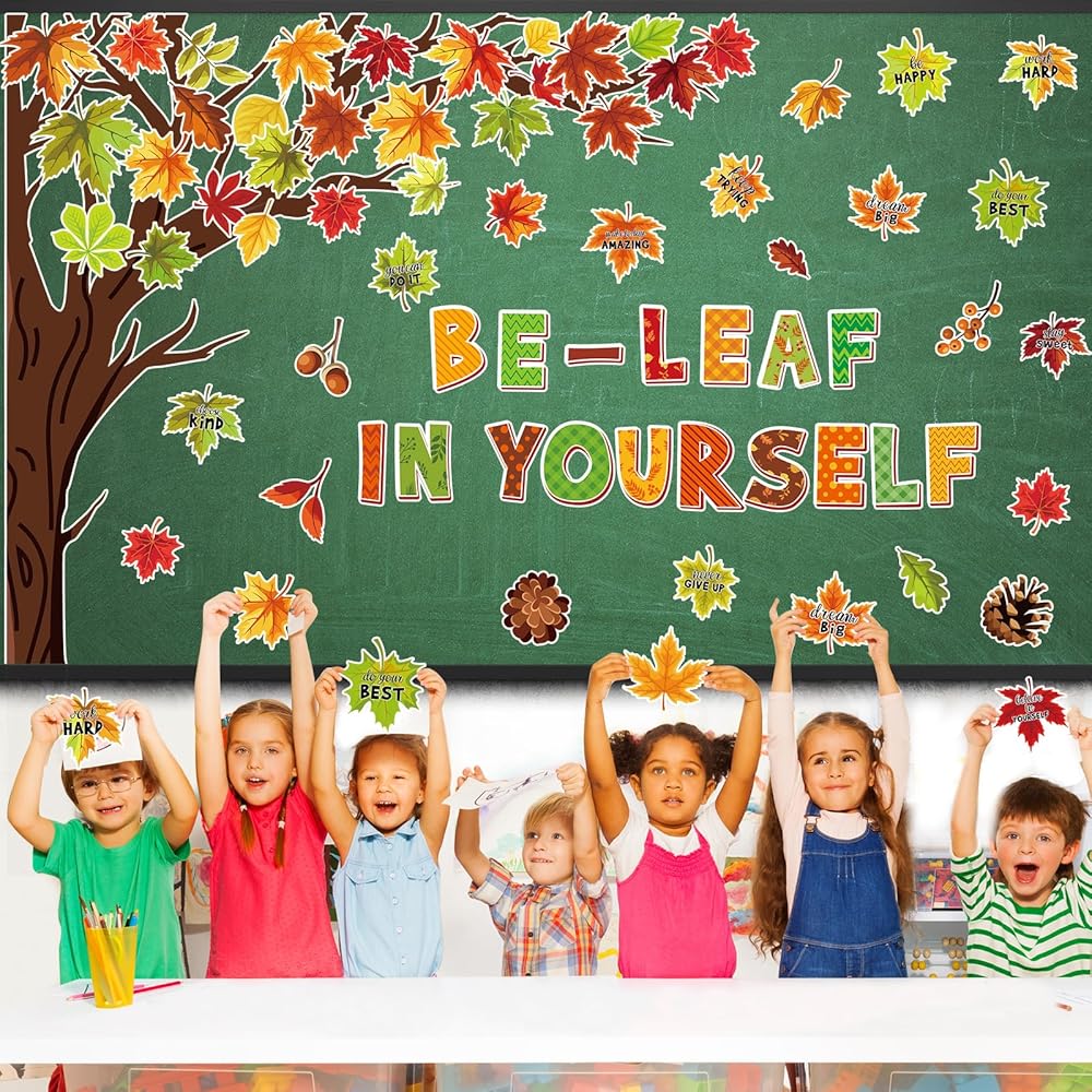 • Reliable Material: our fall be-leaf classroom chalkboard decorations are made of card stock for a strong and secure fit and are laminated for extra durability. The colors are bright, not easy to fade, and have enough adhesive dots to help stick and last for a long time.