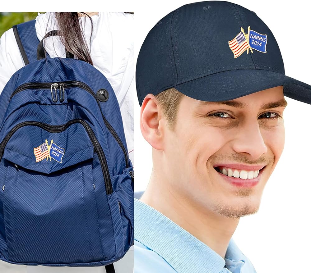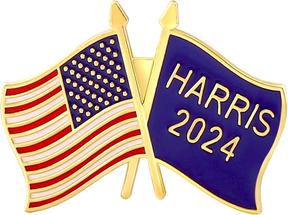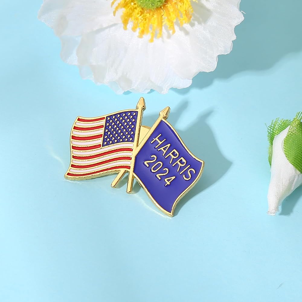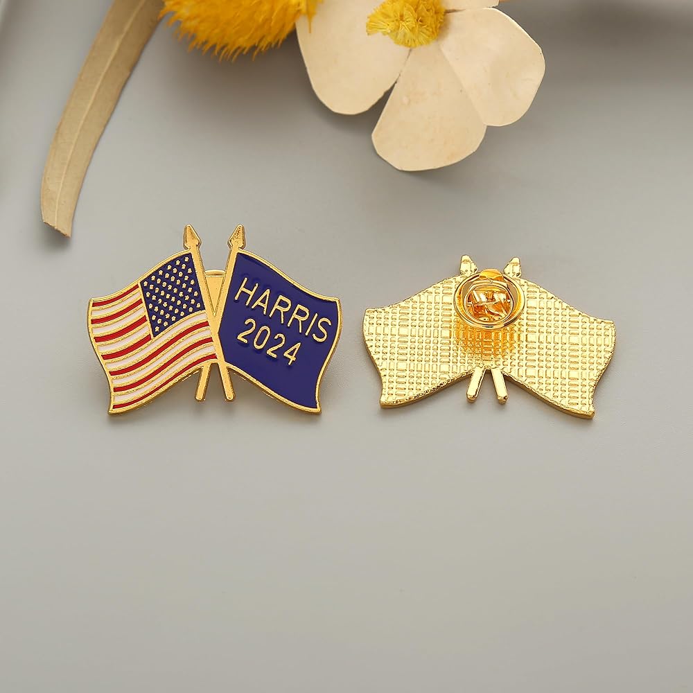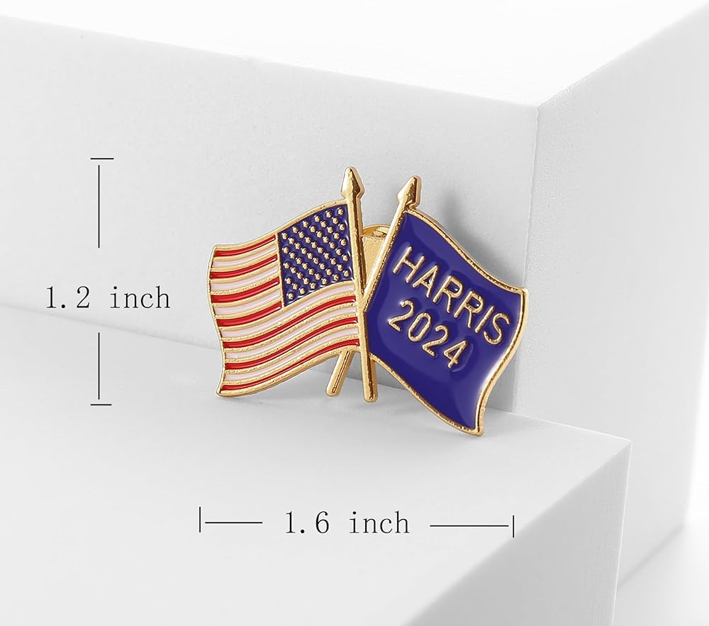 Design: 2024 Harris USA President vote American candidate iced out rhinestone brooches lapel pins.