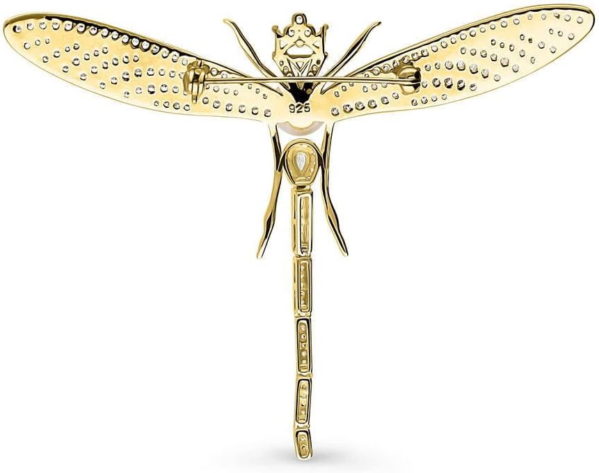 925 Sterling Silver: This dragonfly brooch is crafted with fine solid sterling silver, stamped 925. Yellow gold flashed for enhanced durability.