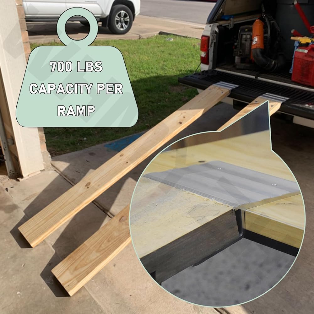 Constructed from heavy-duty extruded aluminum, the standard 2" x 8" plate (we recommend oak hardwood for proper fit and maximum weight load) transforms into a quick ramp for loading 4-wheelers, lawn mowers, ATVs, snowmobiles, and more.