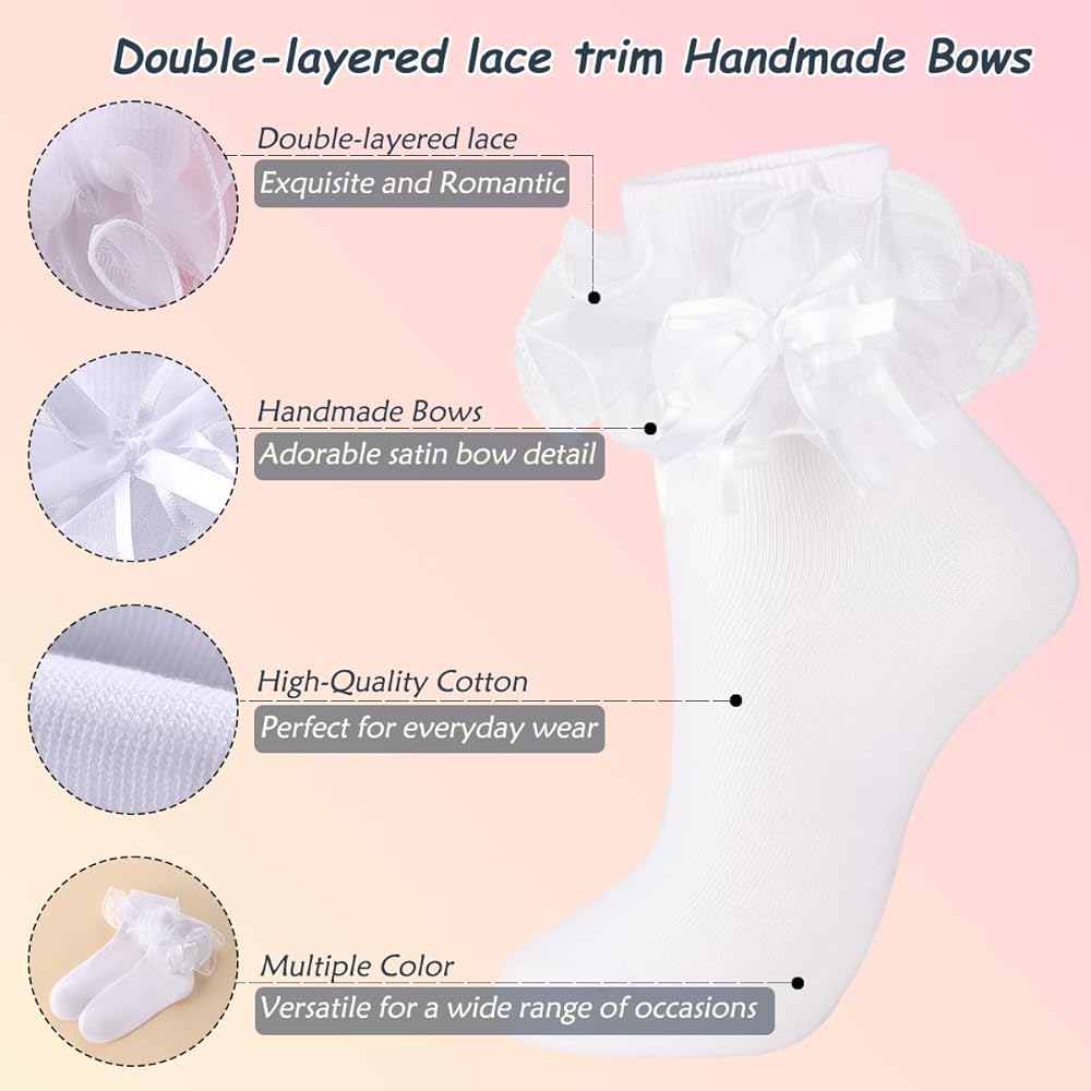 Versatile Color Options: DICRY lace socks are available in various colors, including White Socks, Black Socks, and Navy Blue Socks. They are ideal for a range of events like pageants, parties, Christmas, Halloween, or simply for everyday wear. Choose your favorite color and add a splash of color to your life.