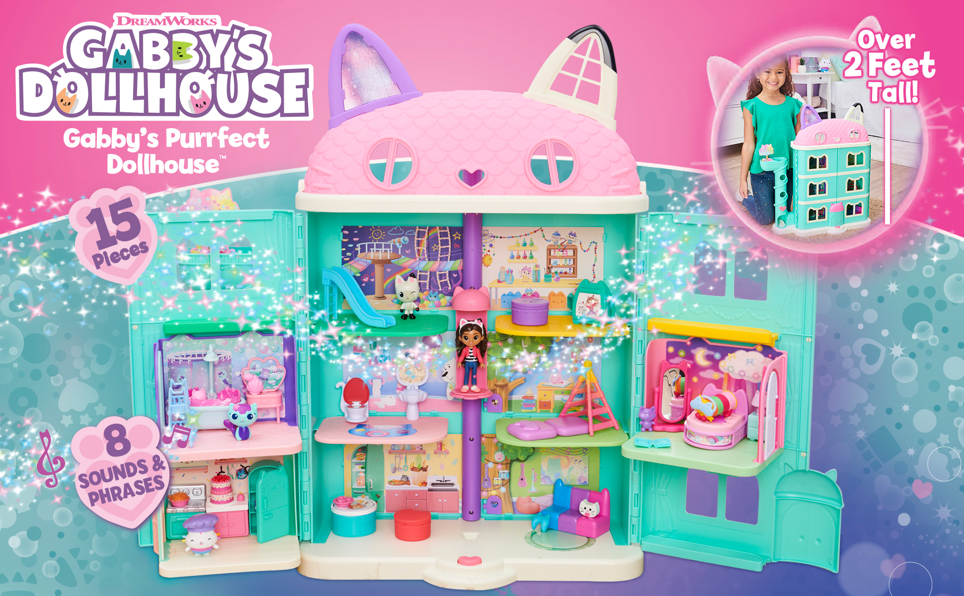 OVER 2 FEET TALL: With its cat-inspired shape and colorful details, Gabby's Purrfect Dollhouse looks just like the one from the show. It's the ultimate setting for your exciting pretend play adventures!