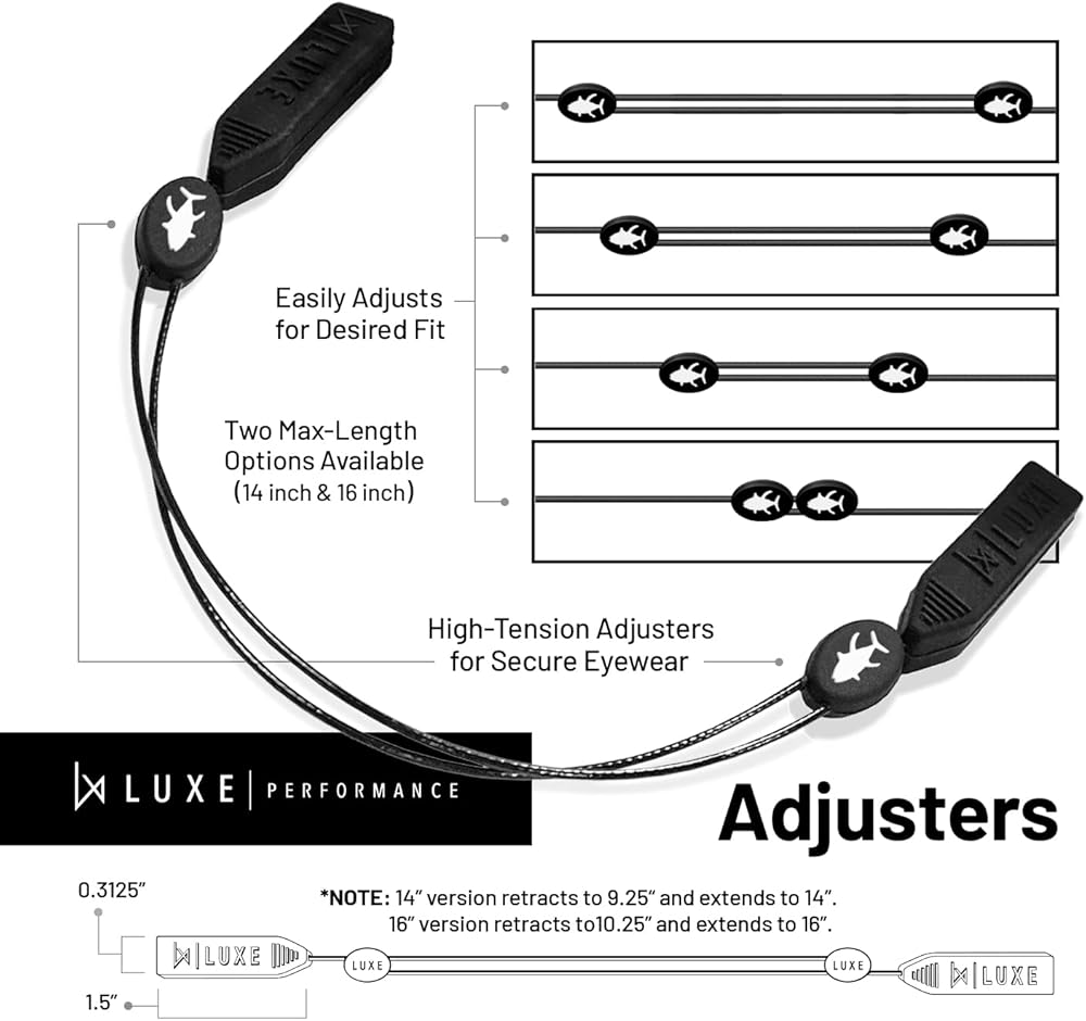 الميزات: قم بتأمين نظارتك المفضلة ولا تفقد زوجًا من النظارات مرة أخرى بغض النظر عن المغامرة. جودة محسنة، وزيادة التوتر، وخيارات الطول المتعددة والمزيد على أحزمة كابل Luxe Performance.