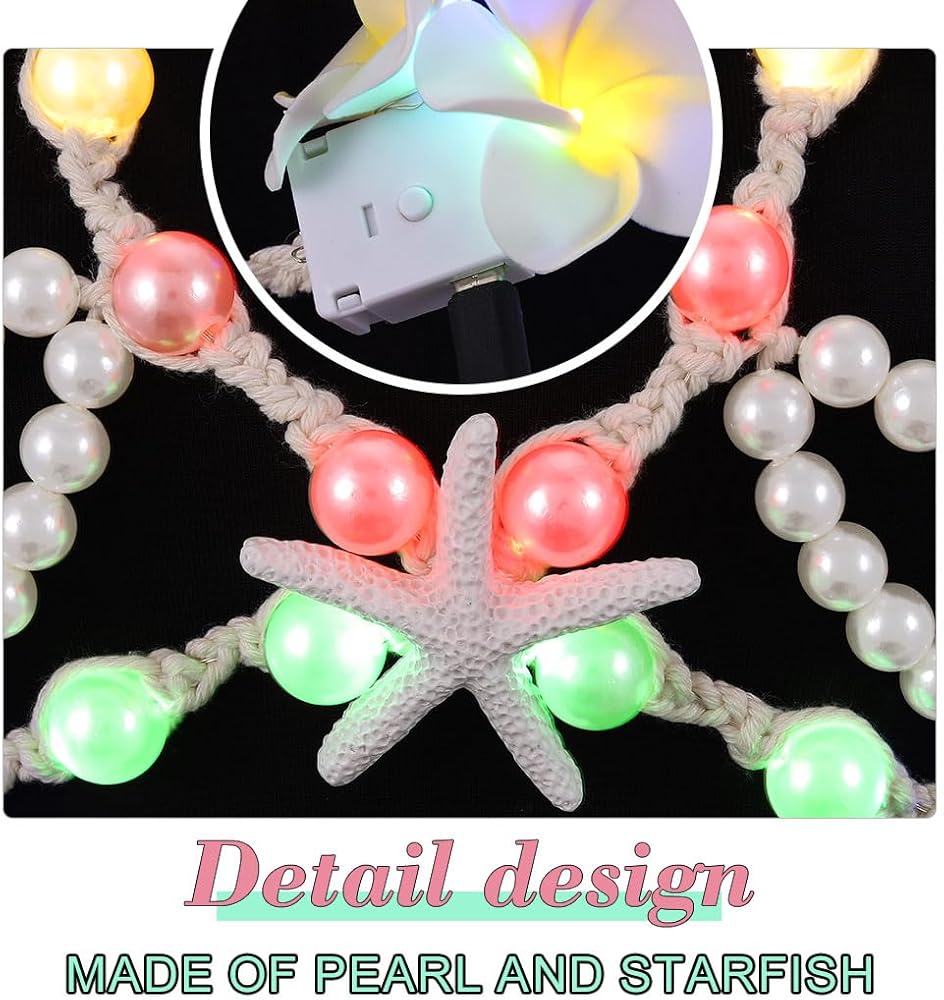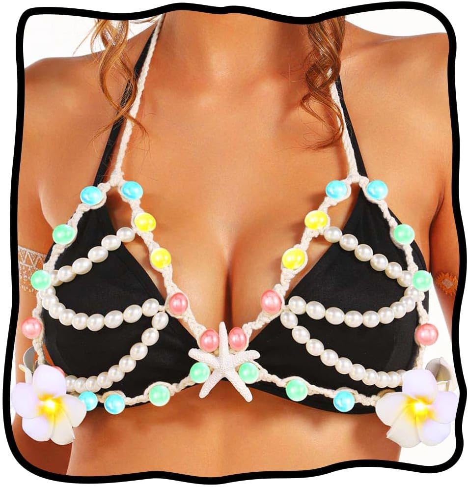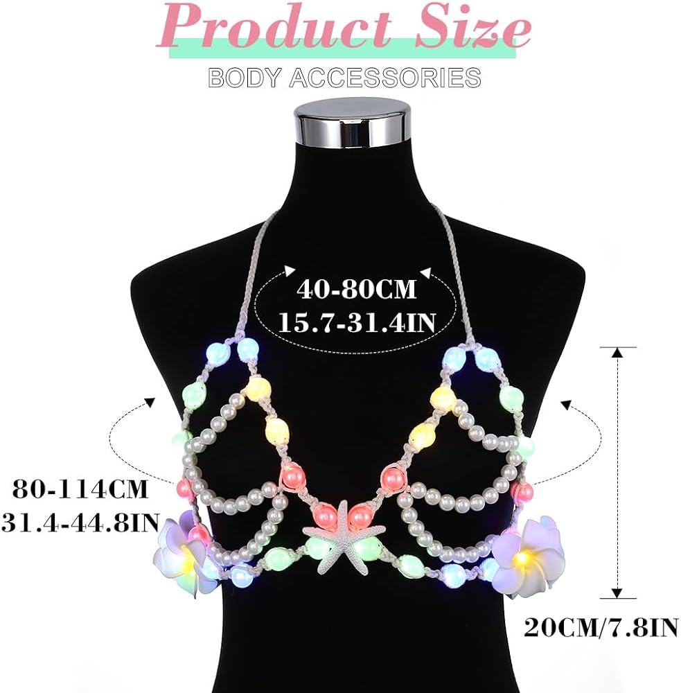 Nicute لؤلؤة نجم البحر الجسم سلسلة سترة تضيء LED الطبقات الصدرية زهرة الرسن توهج بيكيني التستر الجسم اكسسوارات للنساء