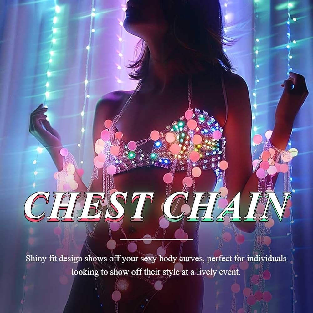 • حمالة صدر بيكيني مصممة بشكل فريد لتجعلك نجمة أي تجمع، تتميز سترة سلسلة الجسم هذه بخيار مضيء مبتكر. مع مفتاح بسيط، يمكنك اختيار تنشيط مصابيح LED المدمجة، والتي توفر مجموعة من الأوضاع بما في ذلك الفلاش السريع والبطيء فلاش، وميض متبادل، مما يضيف توهجًا ساحرًا لمظهرك. عندما يتطلب التجمع جوًا أكثر انخفاضًا، ما عليك سوى إطفاء الأضواء وسيظل يحتفظ بسحره الطبيعي.
