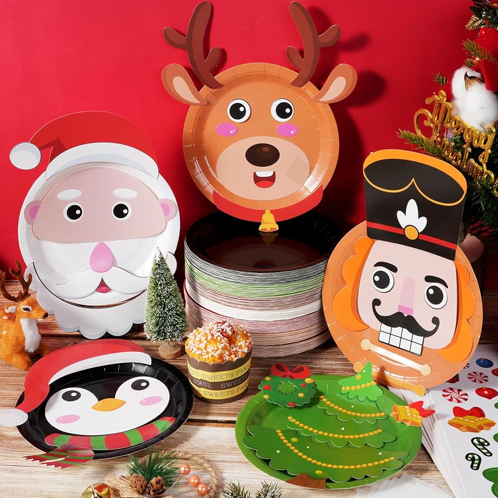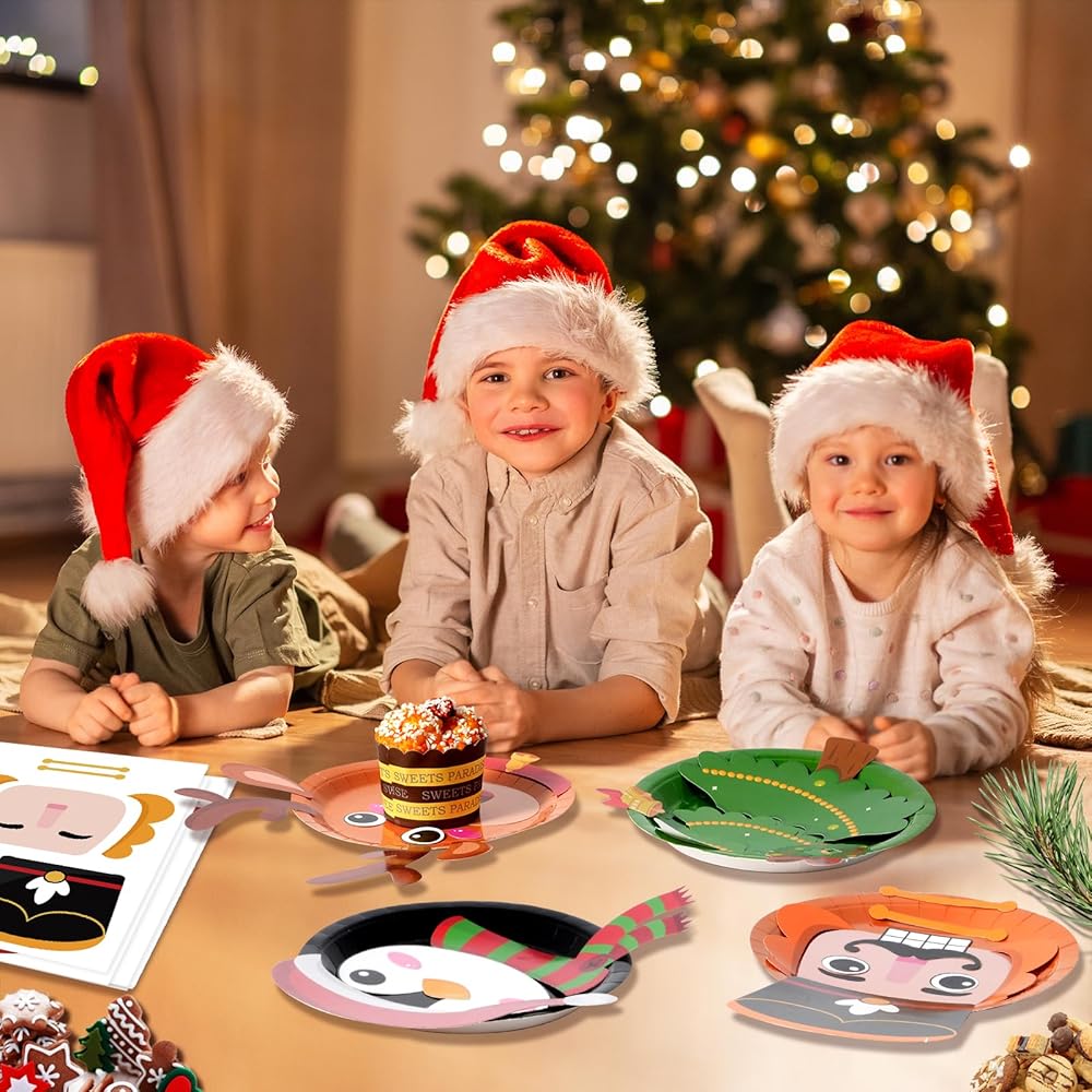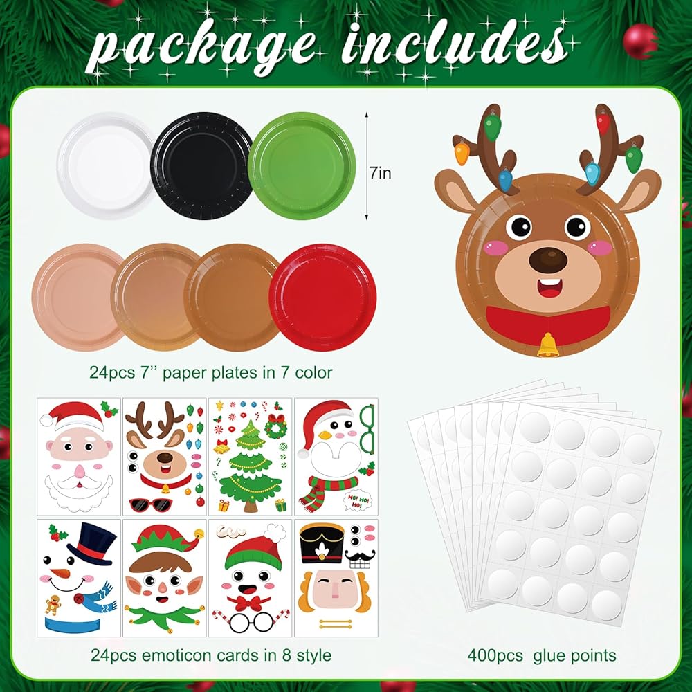 Our Christmas paper plates art craft sets is safe and environmentally friendly, made of premium paper material with red green gray black white orange colors. 24 pieces paper pattern cards with Christmas element like Santa, Christmas Tree, Snowman,Elk, all very beautiful and colorful,can help kids improve color perception and matching.