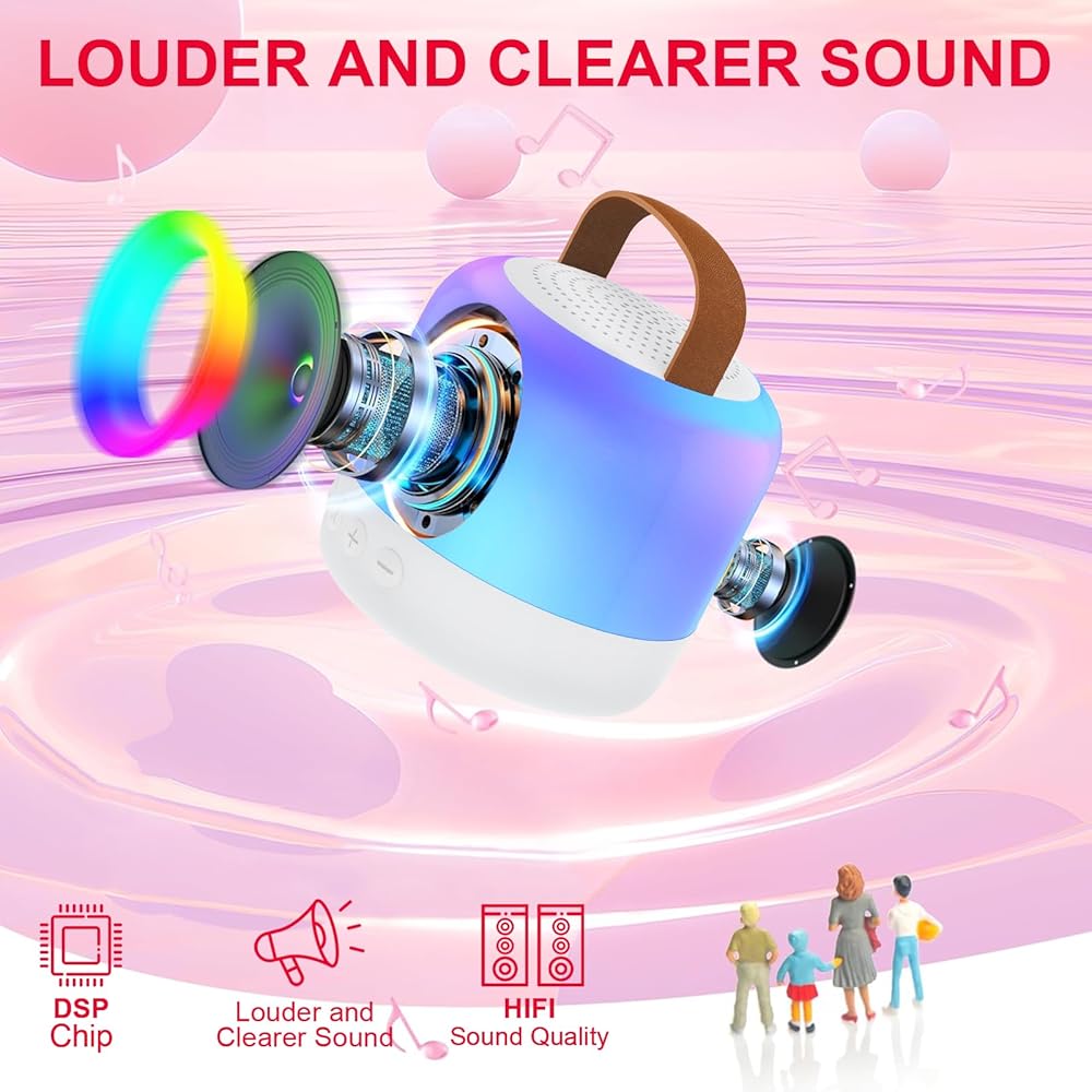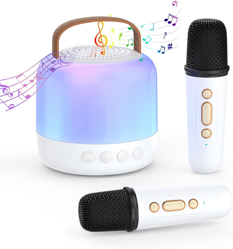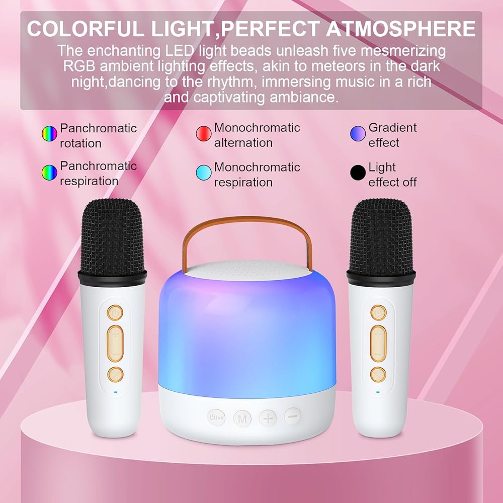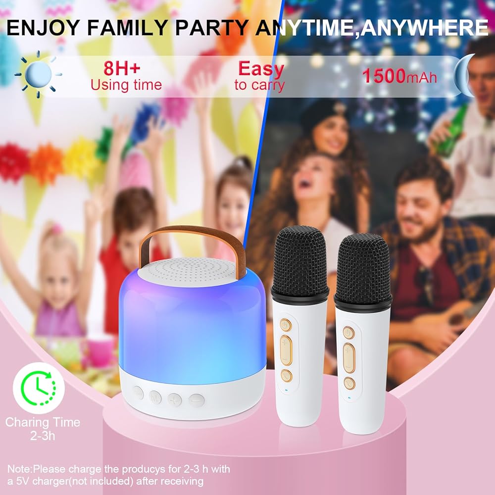 Karaoke Machine for Kids Adults, Mini Portable Bluetooth Karaoke Speaker with 2 Wireless Microphone and Lights