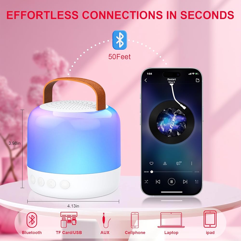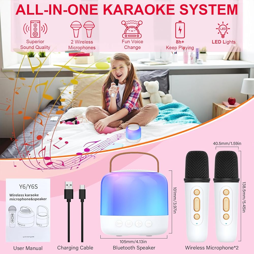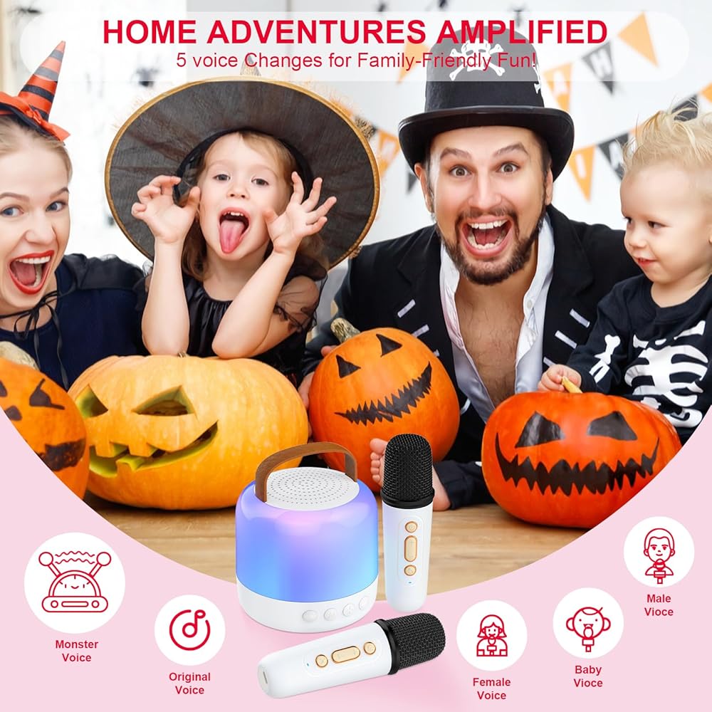 Karaoke Machine for Kids Adults, Mini Portable Bluetooth Karaoke Speaker with 2 Wireless Microphone and Lights