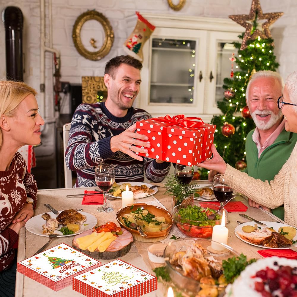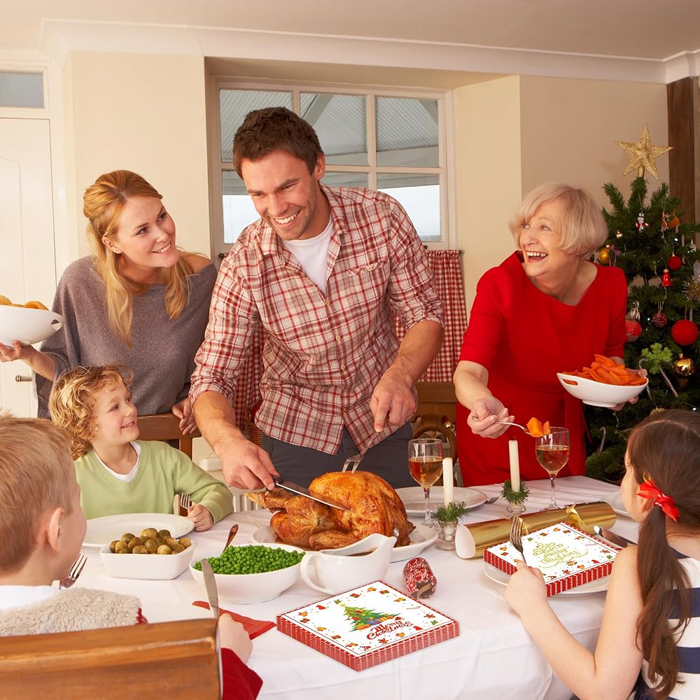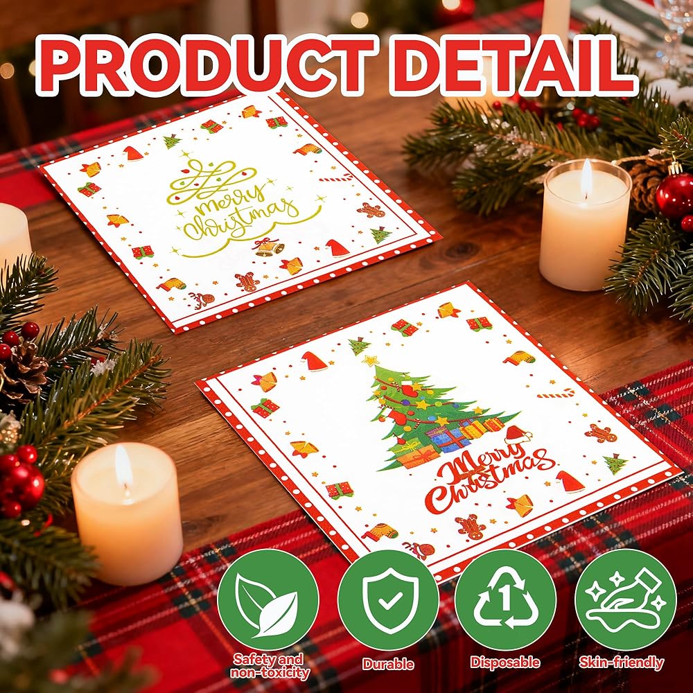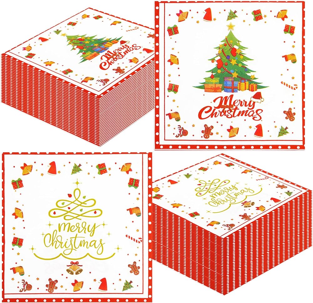 50 قطعة من المناديل الورقية لعيد الميلاد المجيد - مناديل غداء شجرة عيد الميلاد مقاس 6.5 × 6.5 بوصة، مناديل عشاء مزدوجة الجوانب للاستخدام مرة واحدة لتزيين حفلات عيد الميلاد وعيد الميلاد