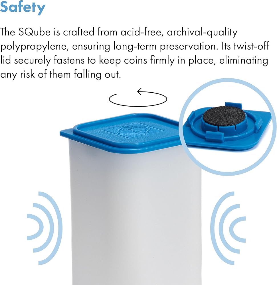• تصميم مبتكر وقابل للتكديس: يتميز أنبوب Sqube بغطاء دوار مبتكر للإغلاق الآمن والفتح السهل، بينما يعزز شكله المربع كفاءة التكديس والجاذبية الجمالية، مما يسمح بتنظيم أنيق لمجموعة العملات المعدنية الخاصة بك.