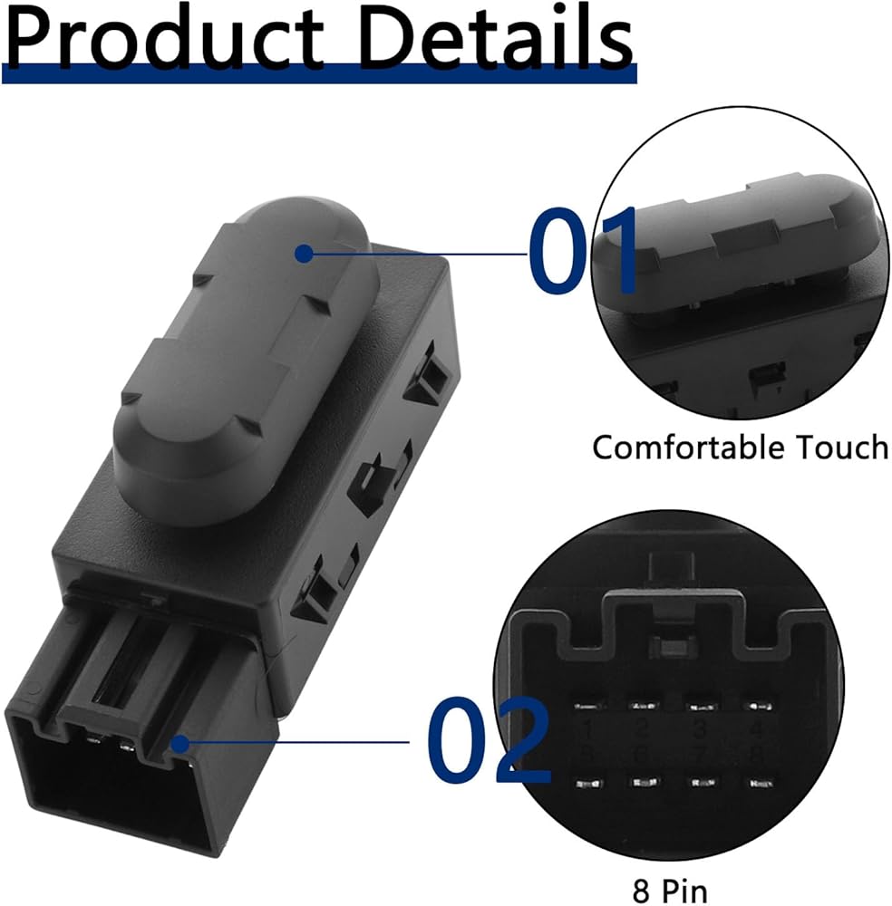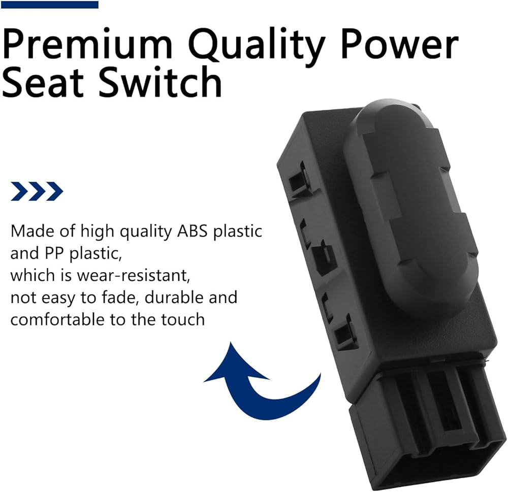 • تصميم OEM، استبدال مباشر: إذا كان مفتاح ضبط مقعد الطاقة الخاص بك من جانب السائق أو الراكب مكسورًا، فقد لا تتمكن من ضبط اتجاهات المقعد للأمام أو الخلف، لأعلى أو لأسفل. يمكنك استبدال مفتاح المقعد المكسور بمفتاحنا. يتوافق مفتاح التحكم في تعديل مقعد الطاقة مع معايير OEM، وهو يناسب سيارتك مباشرة