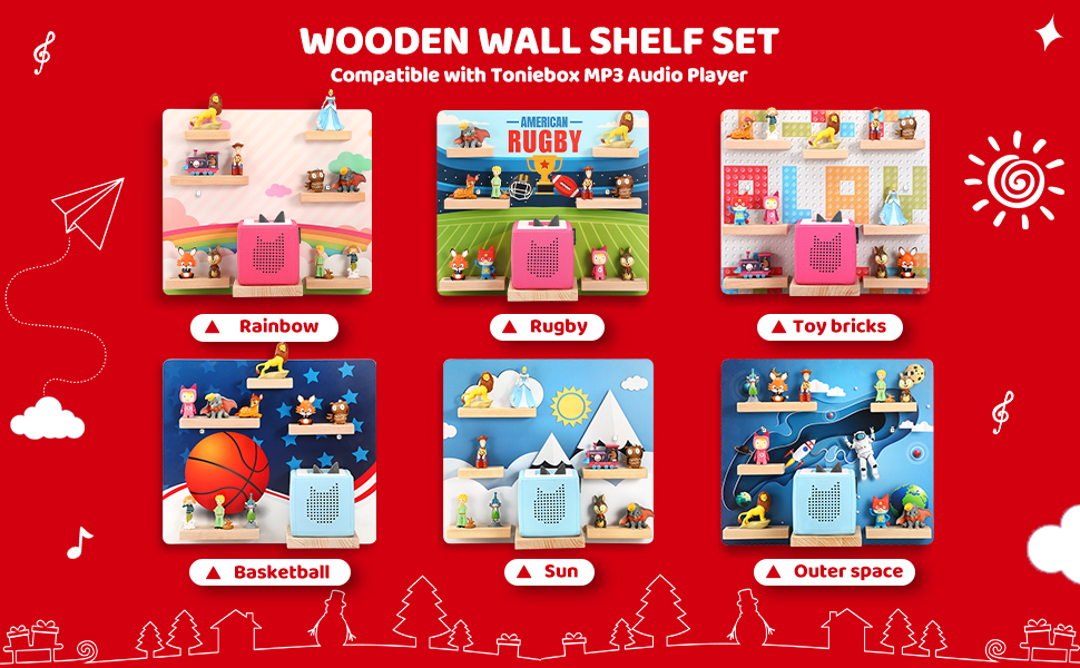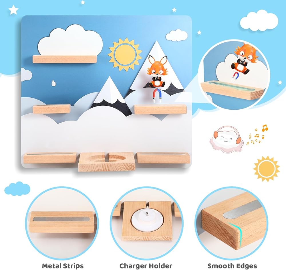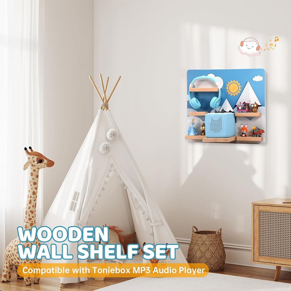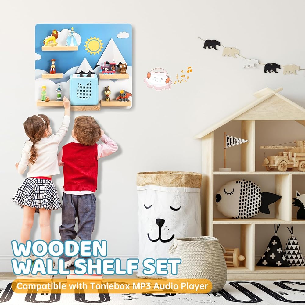 【رف خشبي مغناطيسي】تتميز الأرفف الخشبية العائمة بشرائط معدنية مدمجة تضمن أن يكون لكل شخصية مكانها المخصص. بالإضافة إلى ذلك، فهو يستوعب Toniebox بشكل مثالي.