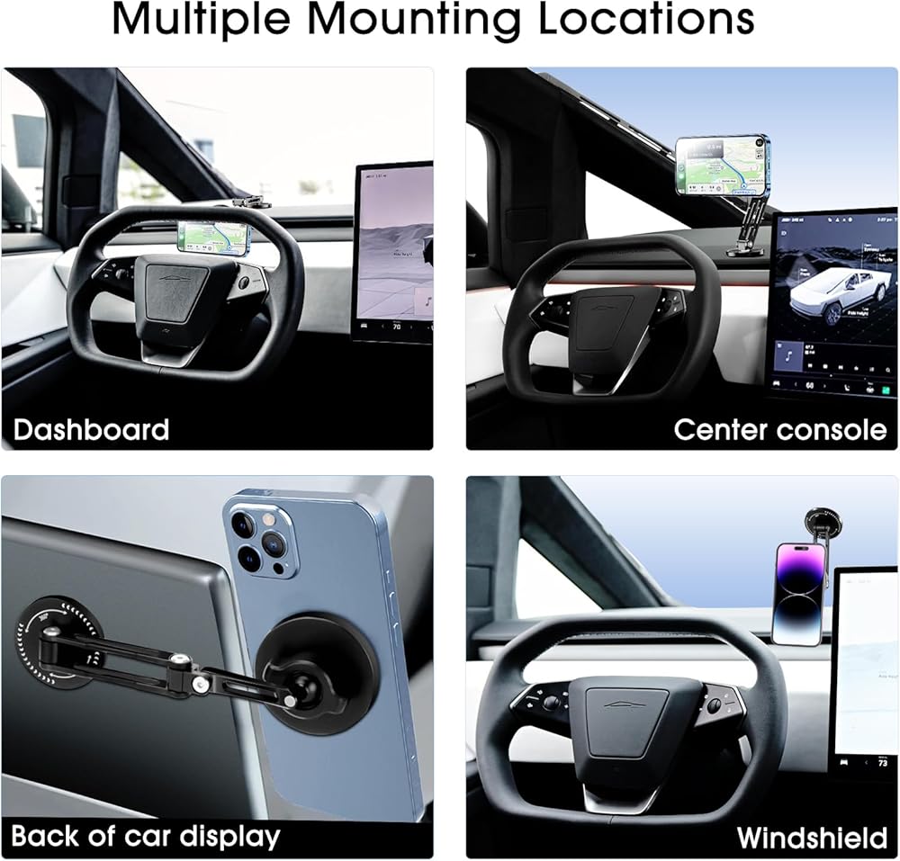 Multi-position installation: Suitable for multiple installation positions of Cybertruck 2024, it can be flexibly installed on the dashboard, air outlet or the back of the car display. This cybertruck MagSafe phone mount can be easily installed