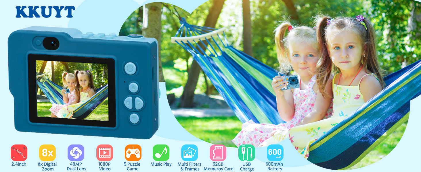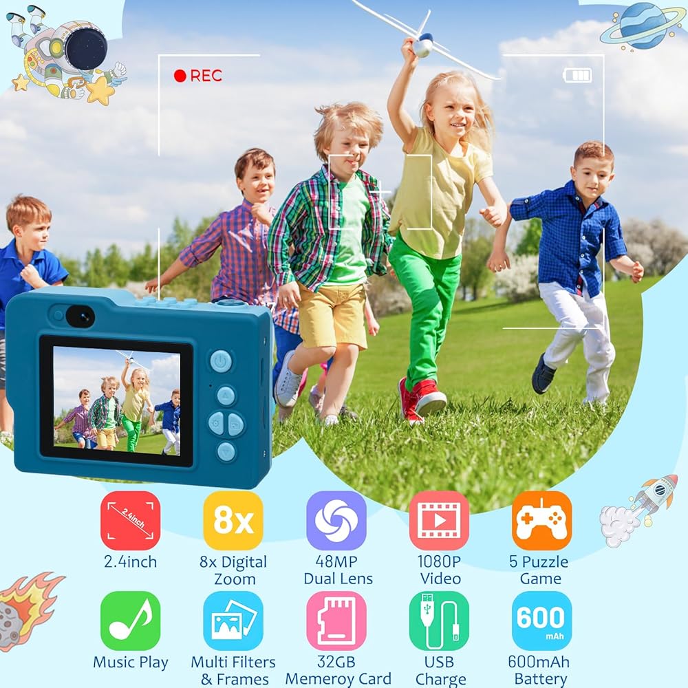 لعبة كاميرا رقمية للأطفال من KKUYT، كاميرا أطفال بشاشة IPS مقاس 2.4 بوصة مع بطاقة SD سعة 32 جيجابايت، وكاميرا فيديو عالية الدقة 1080 بكسل للأطفال من سن 3 إلى 9 سنوات، أفضل هدية لعيد الميلاد للأولاد والبنات