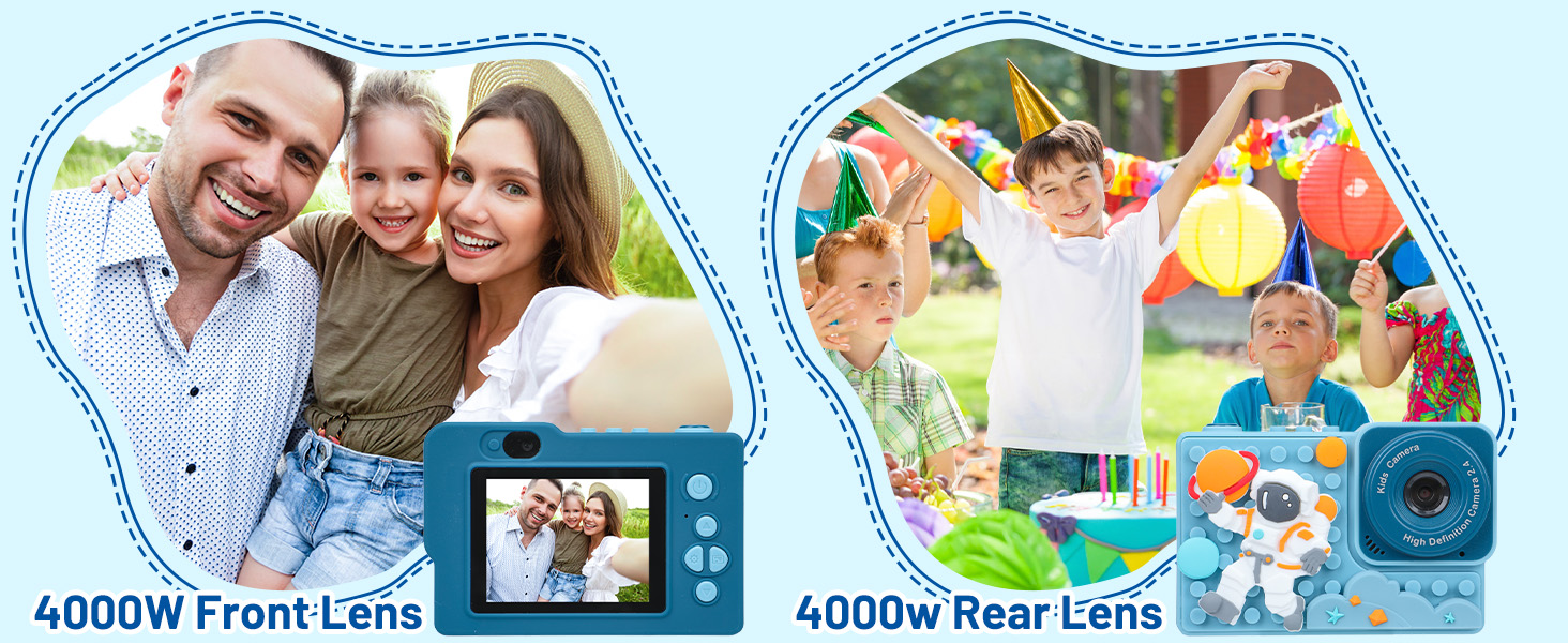 【كاميرا أطفال عالية الوضوح ومتعددة الوظائف】تتميز الكاميرا الرقمية للأطفال متعددة الوظائف المصممة حديثًا بدقة فيديو 1080 بكسل عالية الدقة، وشاشة IPS مقاس 2.4 بوصة، وعدسات أمامية وخلفية مزدوجة، و48 ميجابكسل، وتكبير رقمي 8x، وبكسل 4000 واط، وقدرات الفاصل الزمني . هذه كاميرا صغيرة مذهلة تضمن لأطفالك وأصدقائك التقاط كل لحظة حية من الابتسامة والمغامرة بتفاصيل واضحة وتساعد الأطفال على تسجيل مشاهد جميلة في الحياة، مما يجعل حلم المصور الصغير حقيقة!
