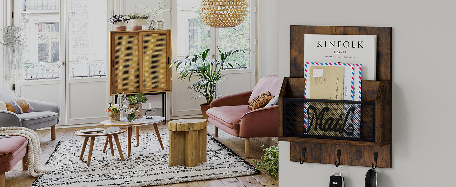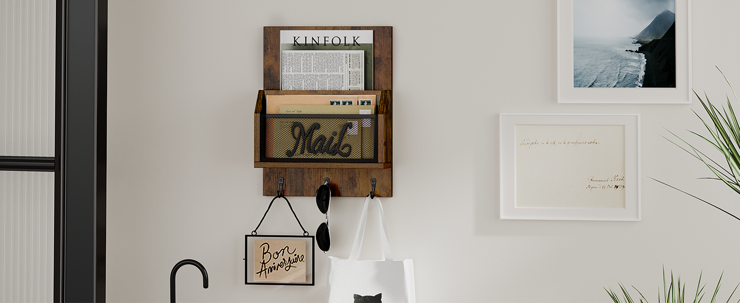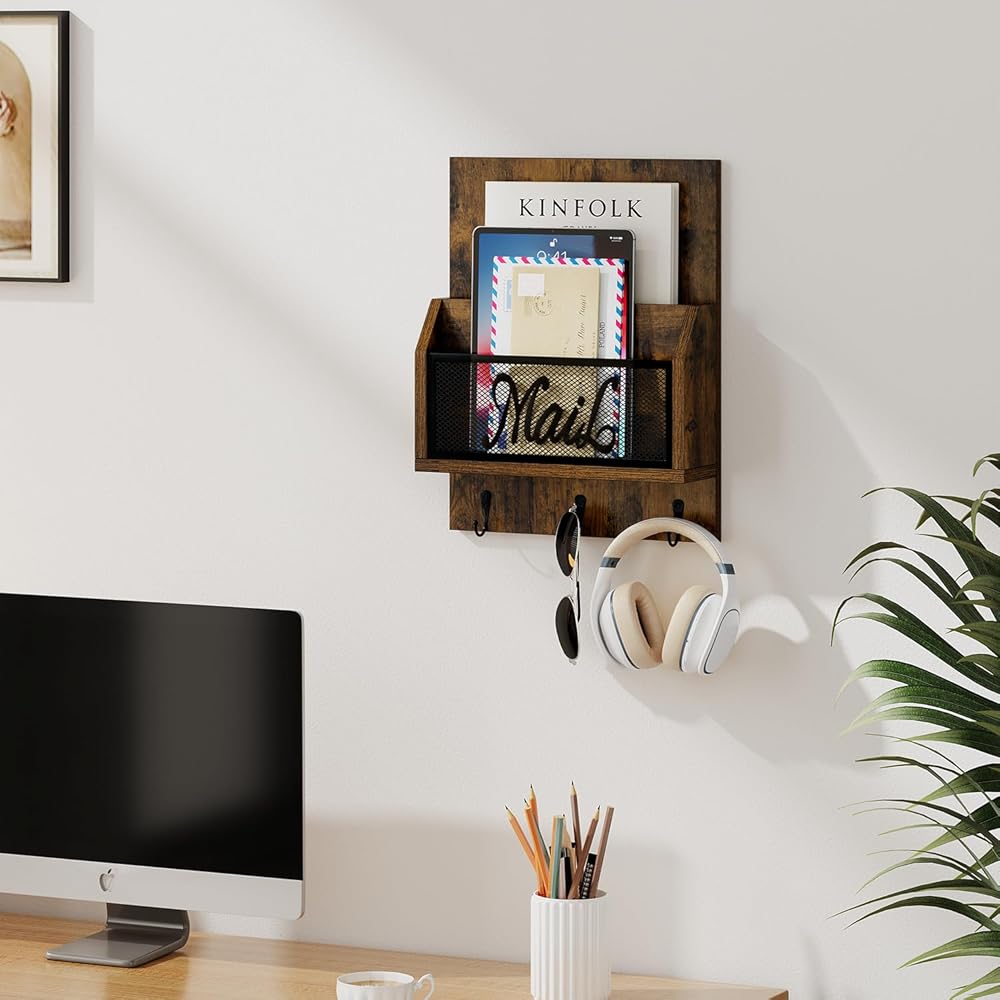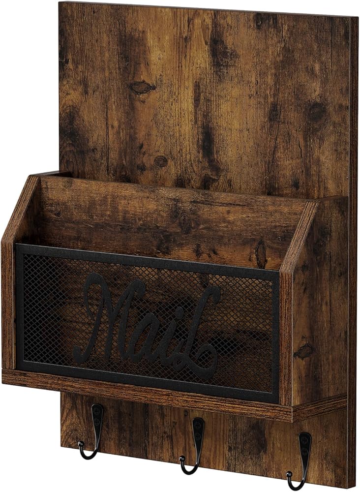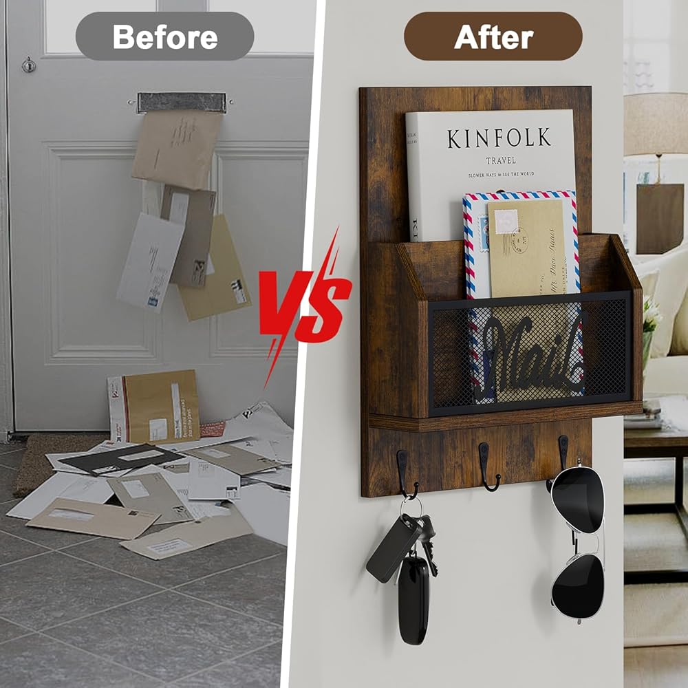 بريد متعدد الوظائف وحامل مفاتيح: مزود بفتحتين للبريد لفرز الحروف والمجلات والصحف، بالإضافة إلى 3 خطافات متينة لتعليق المفاتيح أو النظارات الشمسية أو سلاسل الكلاب أو المظلات. هذا الحائط الذي يفرز البريد يجعل من السهل الحفاظ على مستلزماتك اليومية الأساسيات في متناول اليد ويلغي الحاجة للبحث عن العناصر في غير محلها.