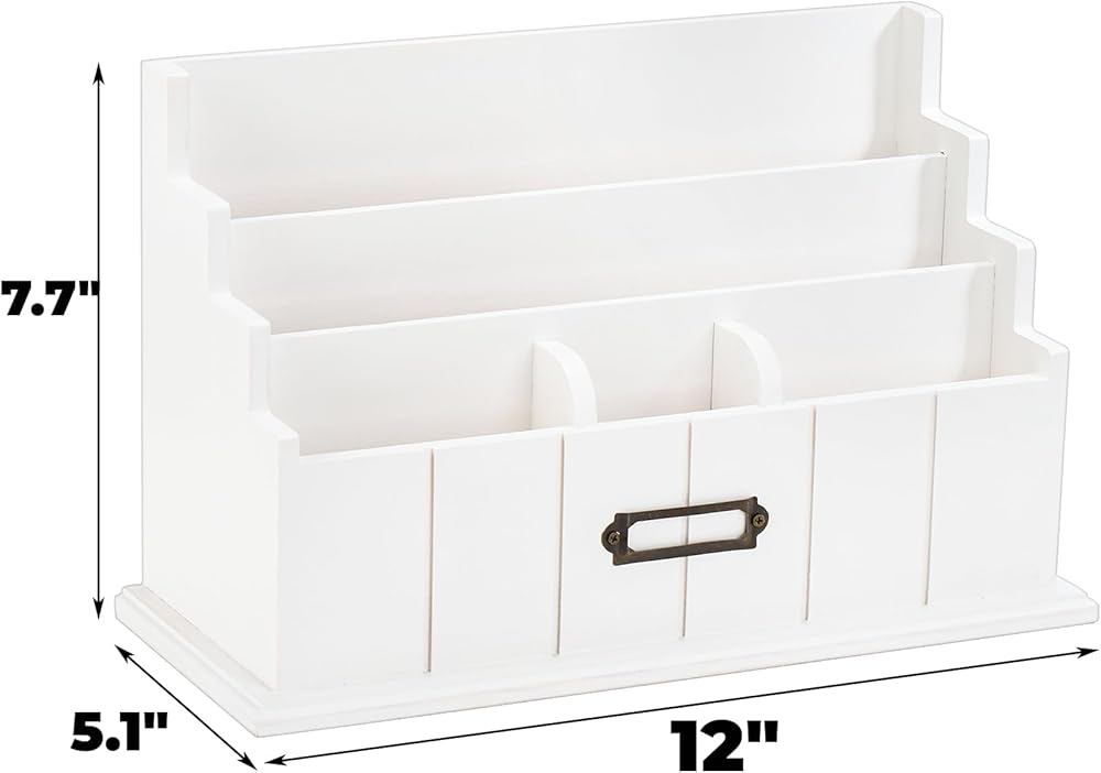 منظم بريد خشبي ثلاثي الطبقات، منظم مكتب على سطح الطاولة، منظم فواتير من الخشب الأبيض، حامل ورق ملف ريفي، فارز بريد سطح المكتب لمساحة العمل للقلم والدفاتر واللوازم المكتبية