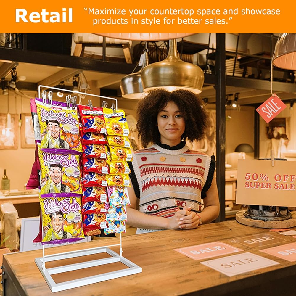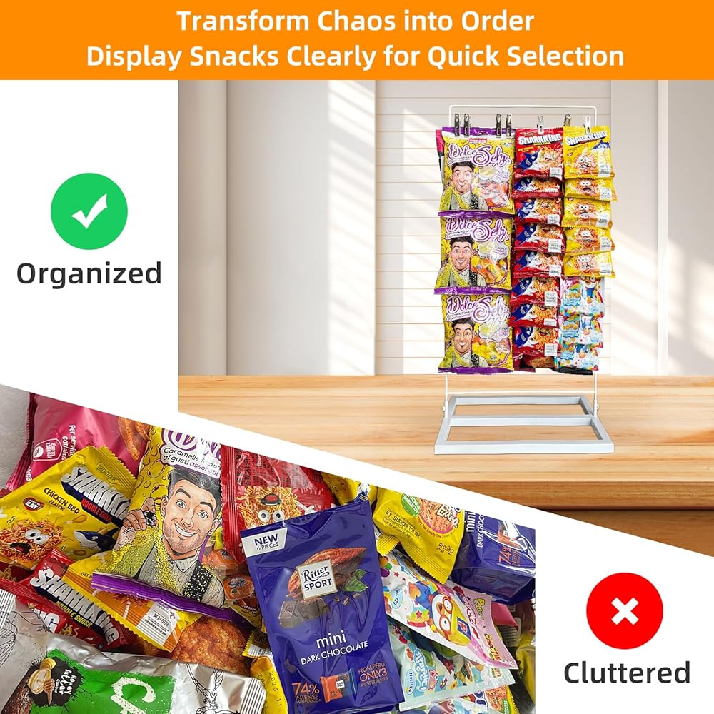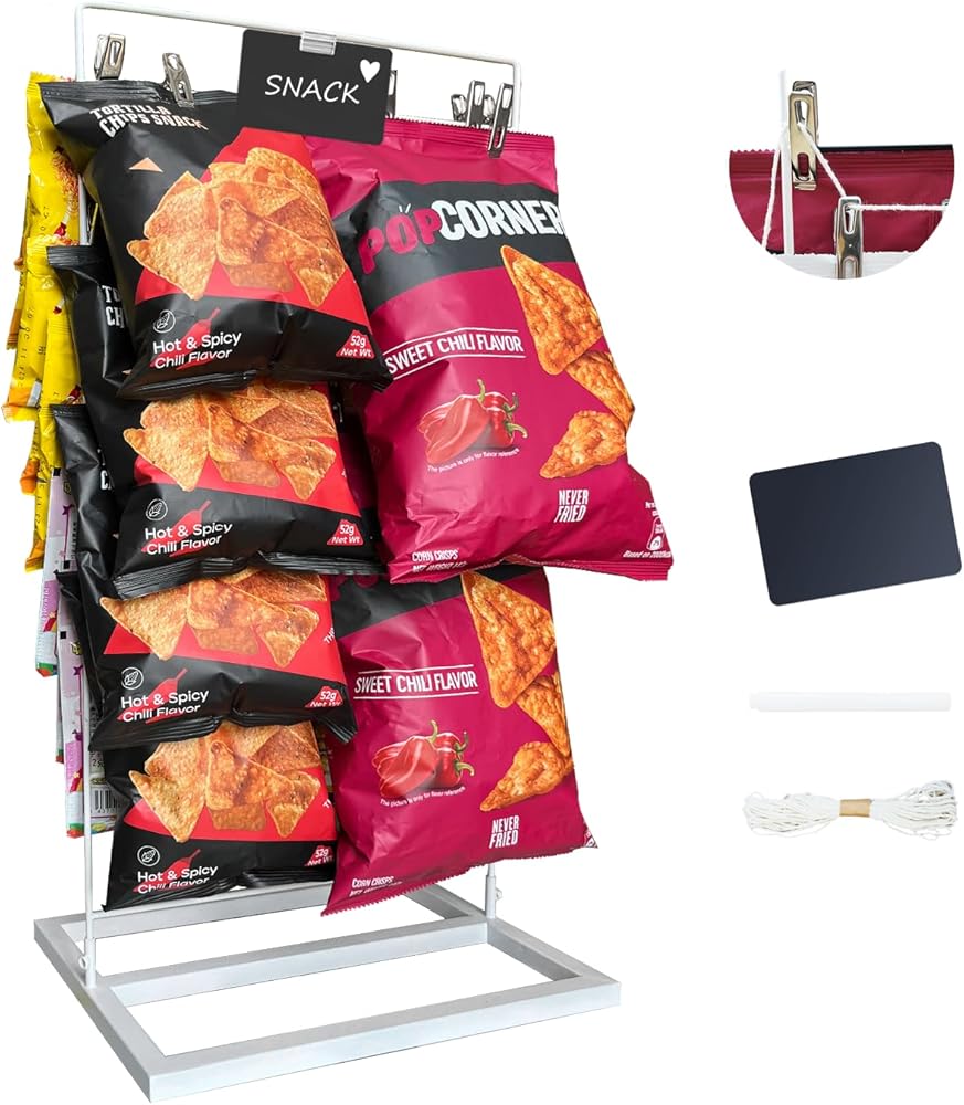 عرض تقديمي جذاب للبائع: لا يعمل رف عرض الرقائق الجذاب هذا على تحسين المساحة الخاصة بك فحسب، بل يجذب العملاء أيضًا، مما يزيد المبيعات في منصات الامتياز أو يجعله حامل عرض مميز لرف الرقائق لبيئات البيع بالتجزئة