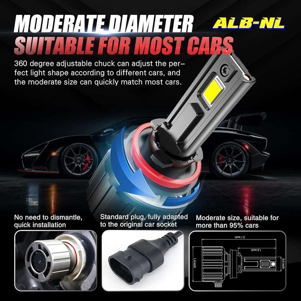 Alla Lighting ALB-NL 16000Lms HB5 9007 مصابيح ضباب LED أو مصابيح تشغيل نهارية (DRL)، 6000K زينون أبيض