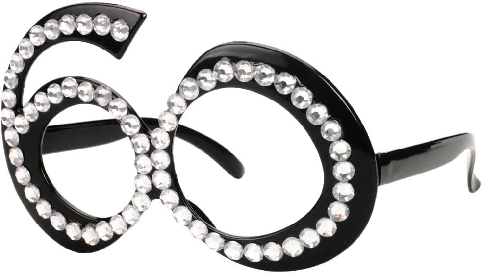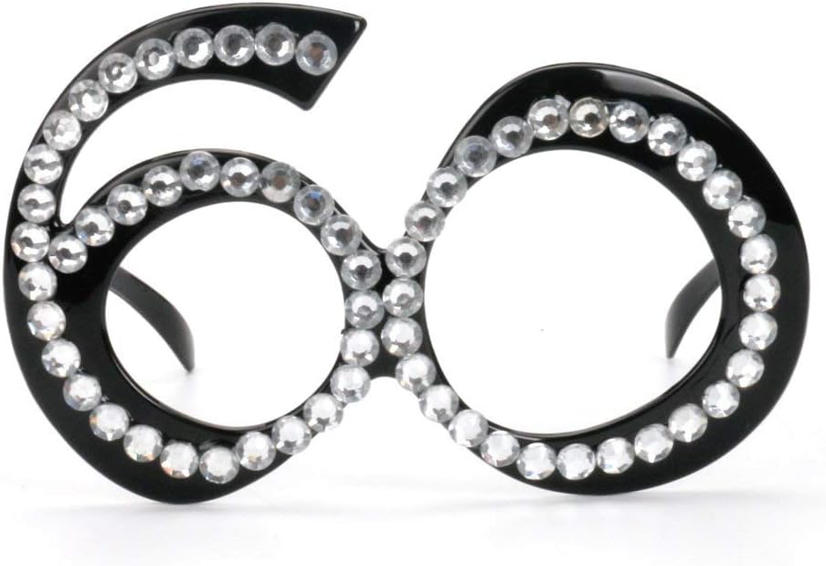 60 and fabulous! These 60th birthday glasses are the ultimate must-have party accessory for a 60th birthday party! The stylish black frames in sparkling crystals are sure to make a statement and get everyone in the mood for a celebration. Perfect for taking fun party photos that you'll cherish for years to come. The glasses are a great way to add a touch of sparkle and fun to any 60th birthday celebration. Get ready to celebrate in style with these fabulous 60th birthday glasses.