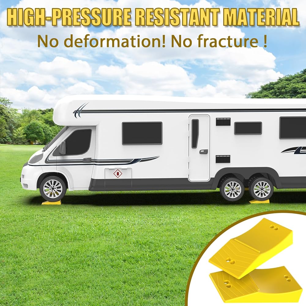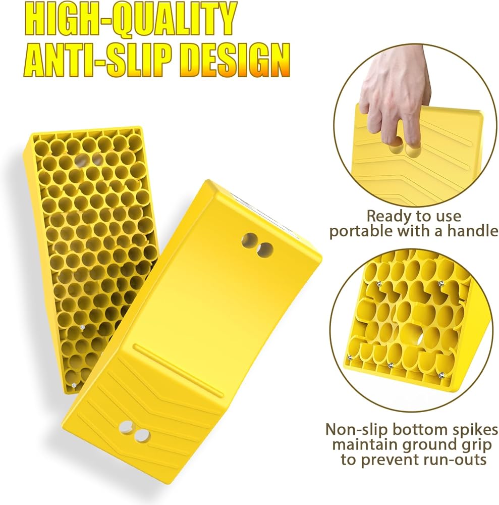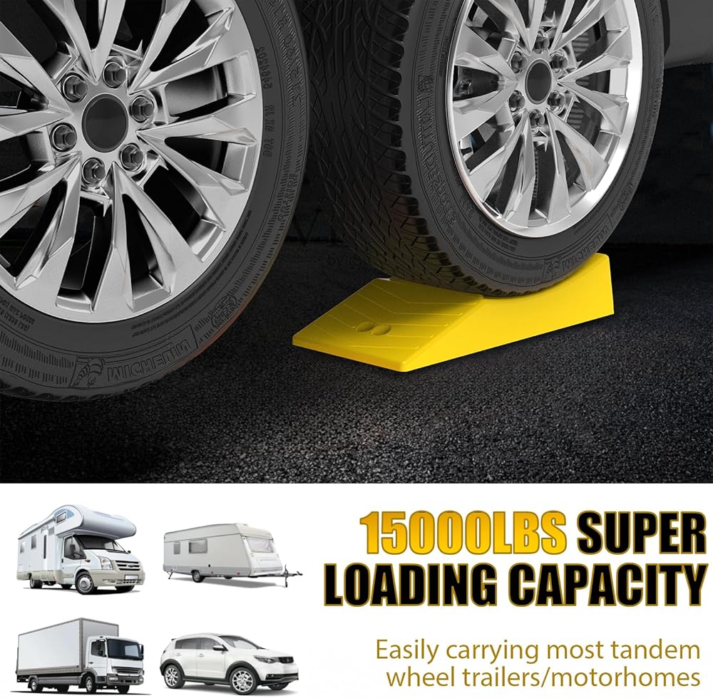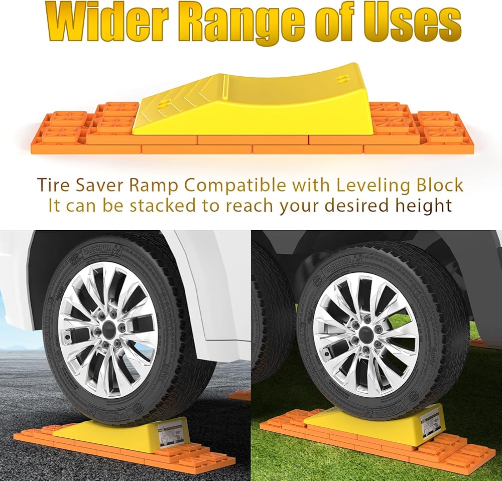 متعددة الاستخدامات: يمكن استخدام منحدر تغيير إطارات المقطورة مع كتلة تسوية RV لضبط الارتفاع، مما يعطي المزيد من الرفع؛ يمكن أن تحمل ما يصل إلى 15000 رطل؛ مثالية لصيانة العجلات والإطارات