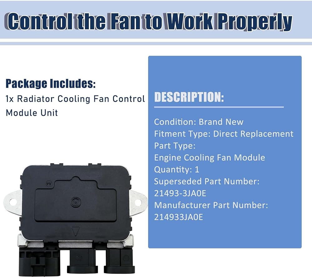 • 【متوافق مع】وحدة مروحة تبريد المحرك 214933JA0E المتوافقة مع سيارات نيسان باثفايندر 2013-2020 ومركبات إنفينيتي Q60 2014-2019، فهي تتحكم في تشغيل مروحة تبريد الرادياتير للحفاظ على درجات حرارة المحرك المثالية.