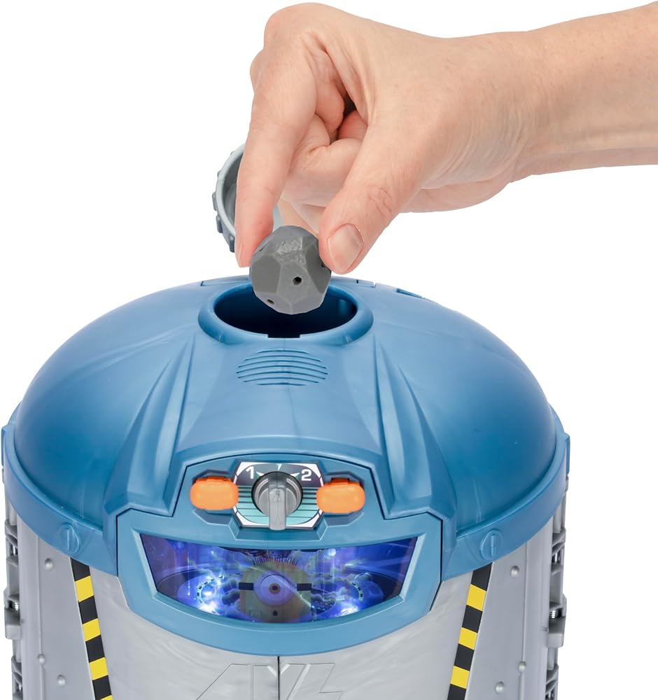 Now your child can re-enact one of the most memorable scenes from the Despicable Me 4 movie with the Mega Minions Transformation Chamber. This amazing toy playset allows kids to transform Jerry into a Mega Minion! Load the 2"/5.8cm figure of AVL Jerry into the top hatch of the Chamber with the Rock. Power up the Chamber by turning the knob to 'Full Power", then activate the Chamber by pulling down the lever and open the Chamber to reveal Mega Minion Jerry! Mega Jerry is 4"/10cm tall. Mega Minion Jerry is exclusive to this special playset and can shoot discs from his mouth! The Chamber opens out to transform into an AVL Training Center with an array of fun action features. Make AVL Jerry escape out of the Surprise Escape Hatch. Watch out for falling rocks as they roll down the shoot! Fire out discs from Mega Minion Jerry's mouth to hit the targets. This awesome transforming playset is battery powered and full of lights and sounds to delight everyone! Includes 2 figures, 6 accessories and 3 AAA batteries. The playset's features and accessories are easy to activate and guaranteed to produce heaps of laugher and fun!