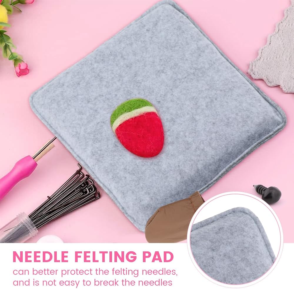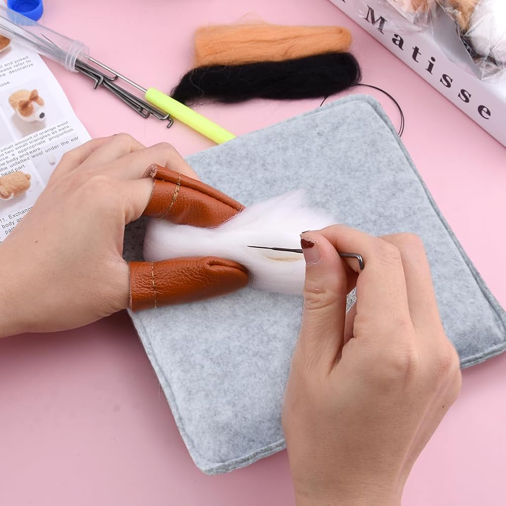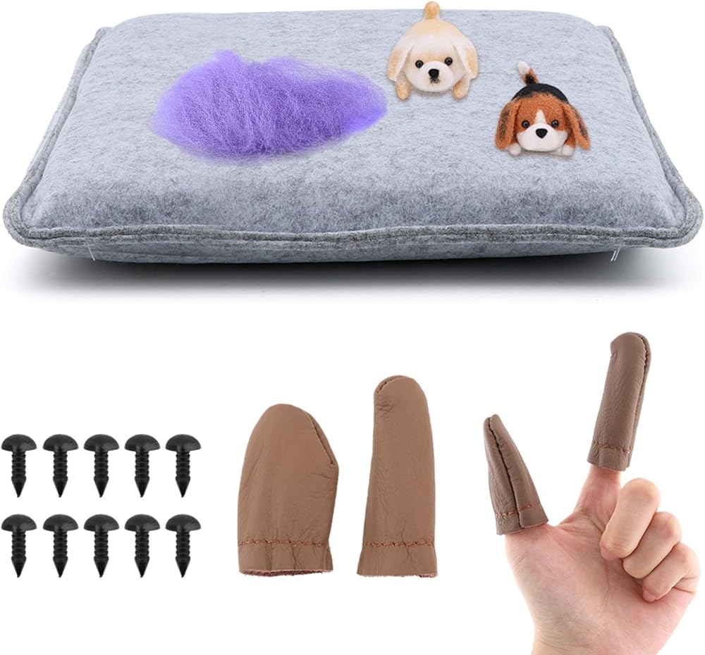 【PACKAGE CONTENT】You will receive 1pc grey wool needle felting pad(about 28.5x28x3.5cm/11.22x11.02x1.38inch), 1pair PU leather finger guards(random color) and 10pcs 8mm black plastic noses, practical tools set for needle felting.
