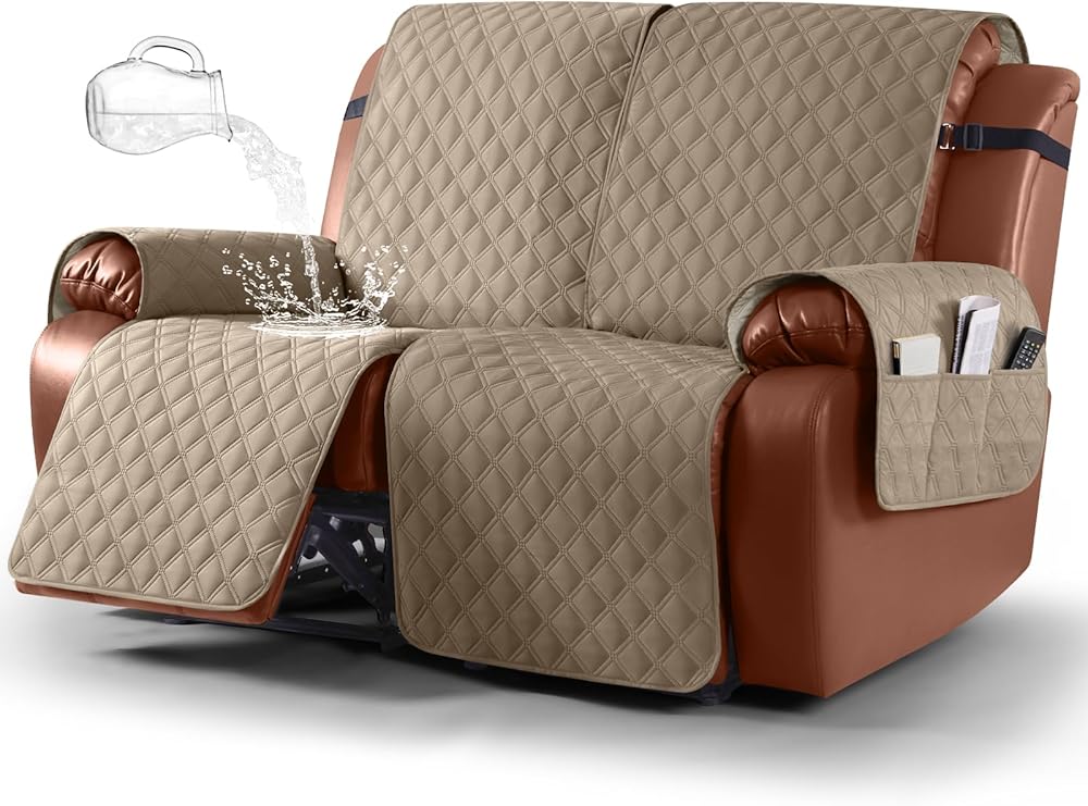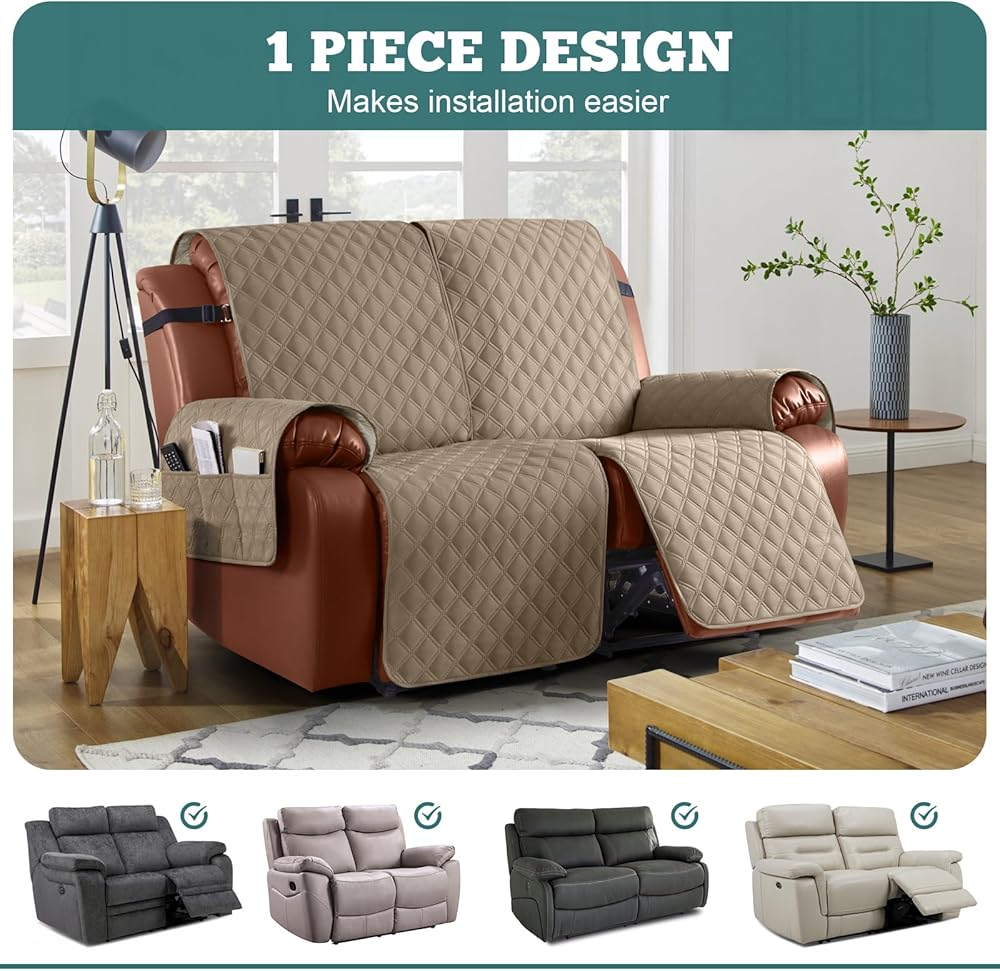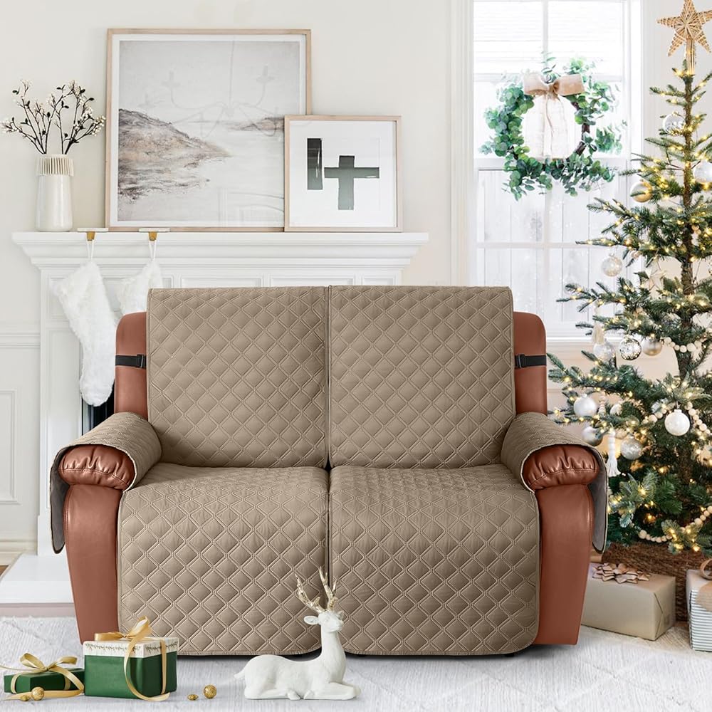 غطاء أريكة مقاوم للماء من Ruaozz مكون من قطعة واحدة من أغطية الأريكة القابلة للاستلقاء، غطاء أريكة غير قابل للانزلاق، واقي أثاث قابل للغسل مع جيب بأشرطة مطاطية للأطفال والحيوانات الأليفة (كاكي، مقعدان)