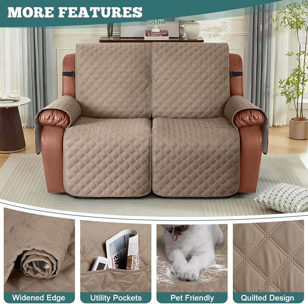 • Ruaozz reclining chair covers are made of choiceness material, quilted from 4 layers of high-quality fabric. The outer layer is made of 100% waterproof polyester and the inner-layer is filled with thick fabric to make it more comfortable, soft and strong.