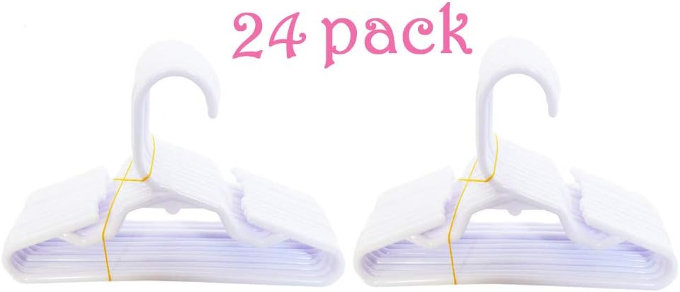24 Pack of White Hangers. These White Hangers are Made to Fit 18 Inch Fashion Girl Doll Clothes. But they will also fit the following. 15" Baby Doll Clothes, 18 Inch Baby Doll Clothes, 20 Inch Reborn Doll Clothes, and Pet Clothes.