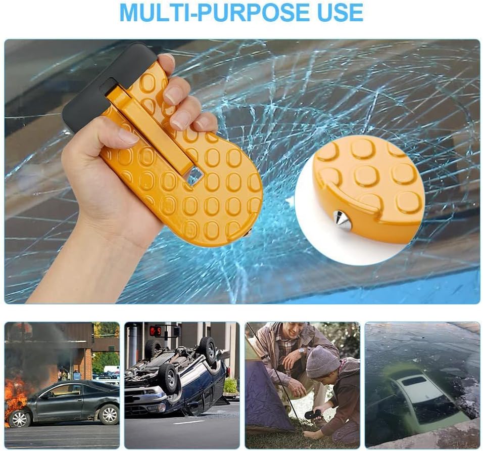 The car door step for car roof access also features a built-in glass breaker for emergency situations.