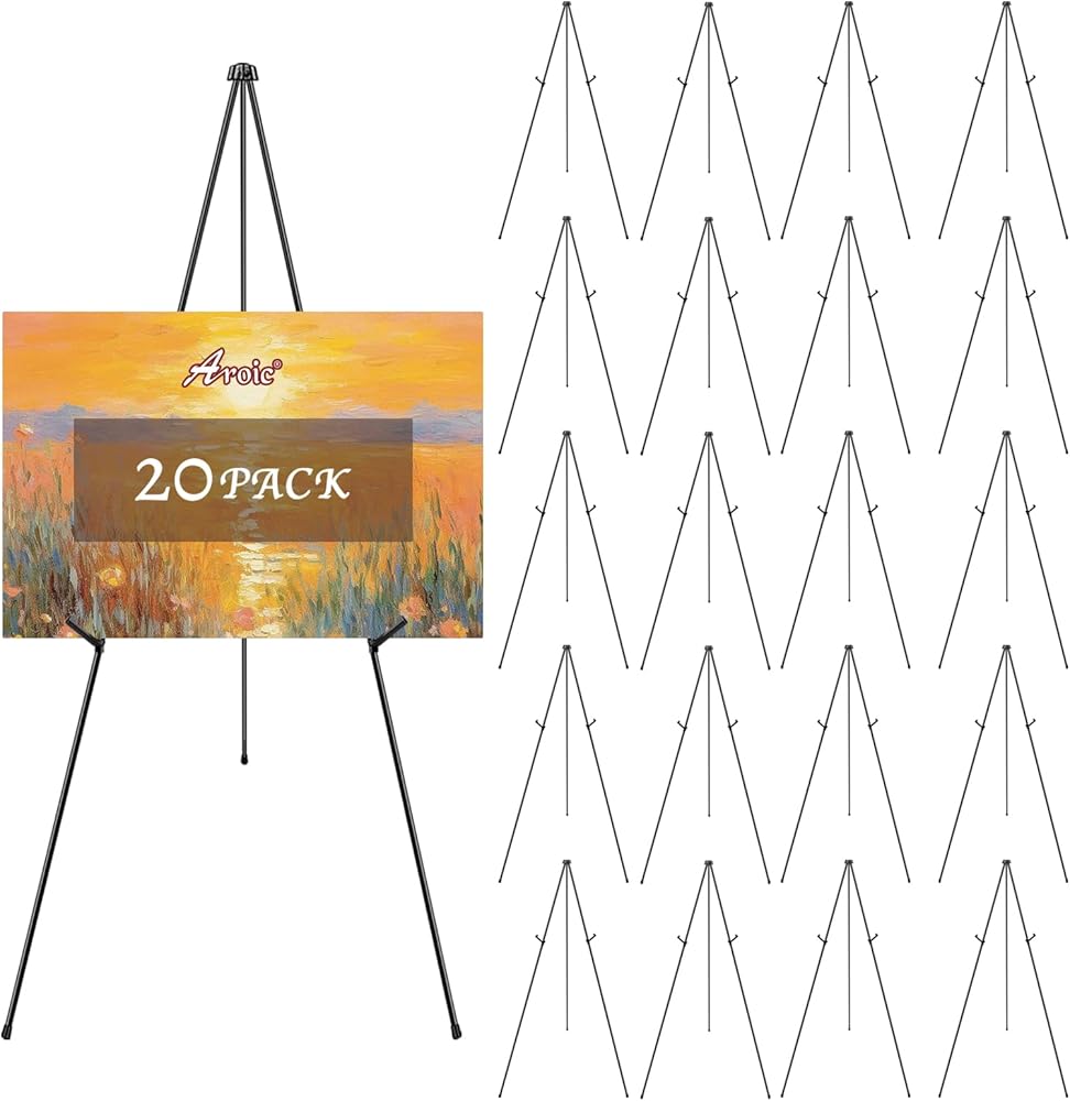 AROIC 63 "Easel Stand for Display, Portable Foldable Metal Easel, Easels for Signs Wedding Logos,Arts, Painting,Adjustable Floor Easels (20pack)